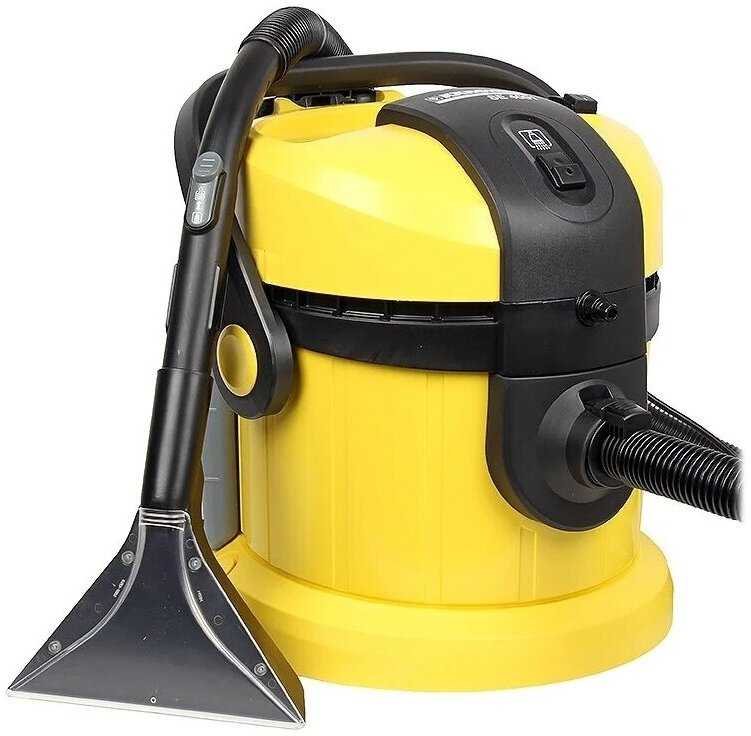 - Мощный всасывающий модуль (до 350 Вт) обеспечивает быстрое удаление воды, включая труднодоступные участки ковров.