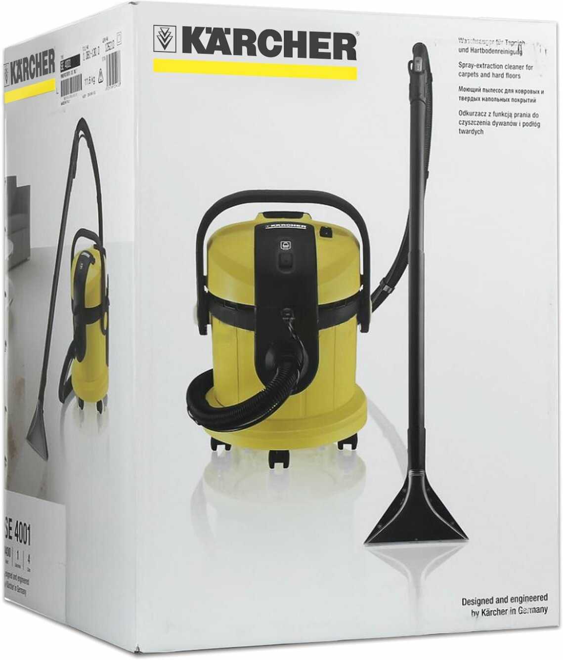 Пылесос не рекомендован для регулярного использования в тесных пространствах из-за габаритов (45×35×30 см) и веса 7 кг с заполненным баком. Его конструкция оптимизирована для эпизодической глубокой чистки раз в неделю или обработки больших площадей (от 50 м²), где колёса компенсируют массу. Для компактных жилищ более практичны компактные аналоги, так как хранение SE 4001 требует отдельного места. -
