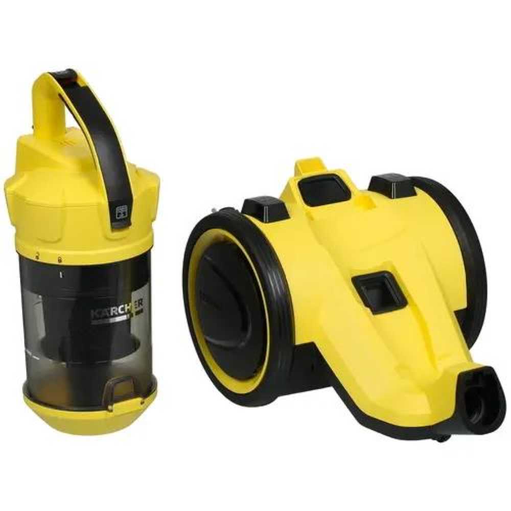 Контейнер объёмом 0.15 л легко снимается и моется под водой, но требует частой очистки из-за малого размера. HEPA-фильтр съемный, однако его замена возможна только через официальные каналы Kärcher. Важно тщательно просушивать все компоненты перед сборкой. -