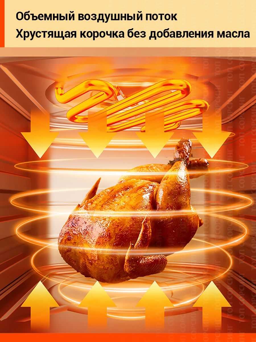 Многие пользователи отмечают, что верх блюд пропекается и подрумянивается идеально, образуя красивую корочку. Однако снизу, особенно при приготовлении пиццы, сочных пирогов или крупных кусков мяса, нагрев может быть недостаточным, из-за чего низ остается влажным или напоминает вареный. Для достижения равномерной прожарки с двух сторон, например, для куриных крыльев или голеней, рекомендуется вручную переворачивать продукты в процессе приготовления. -