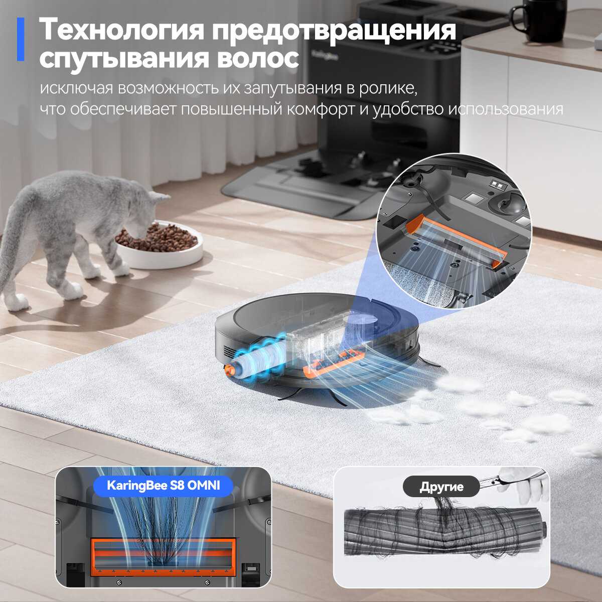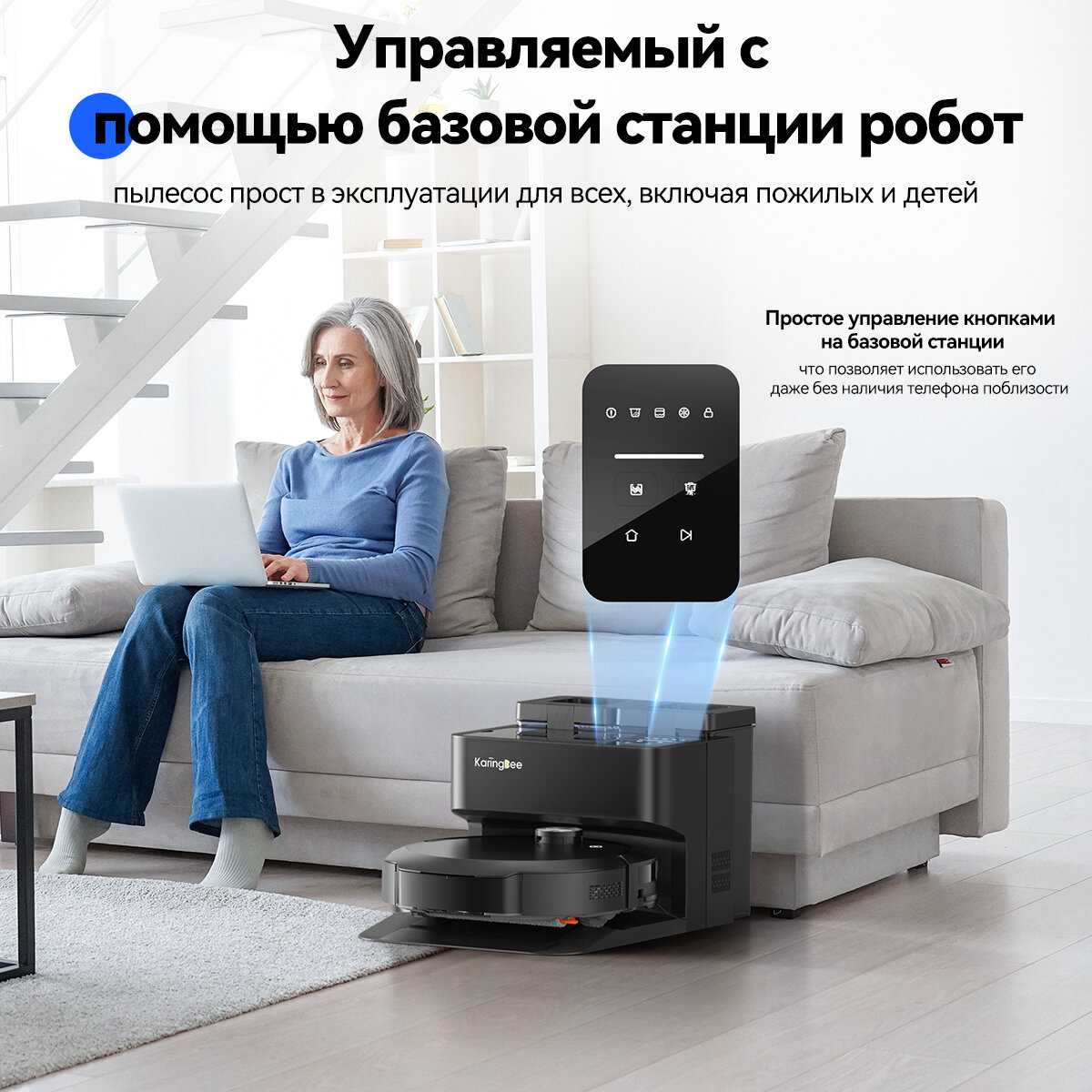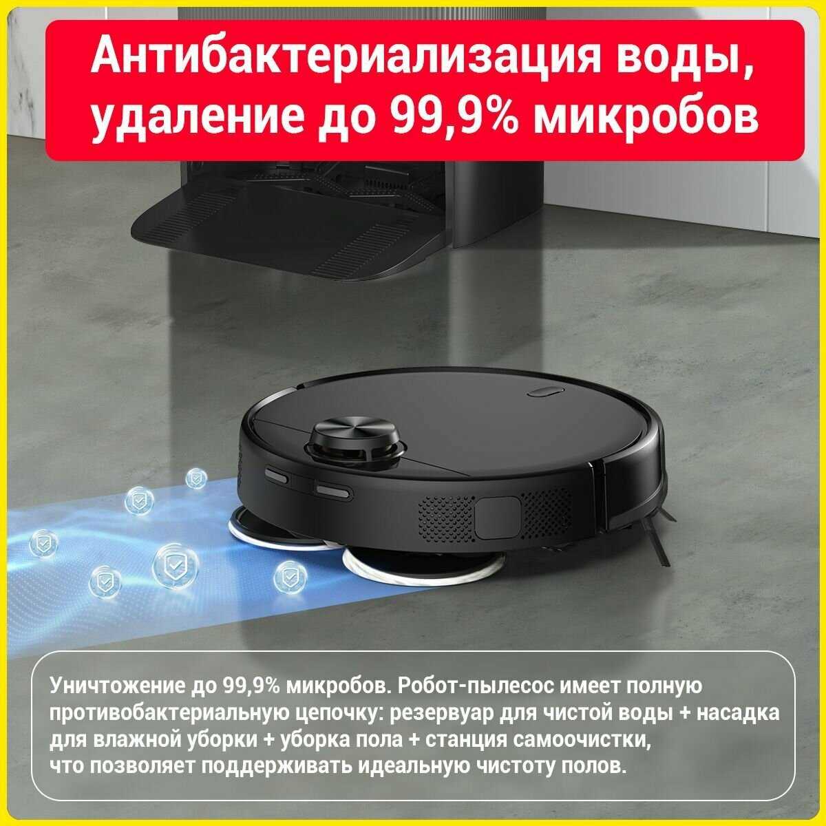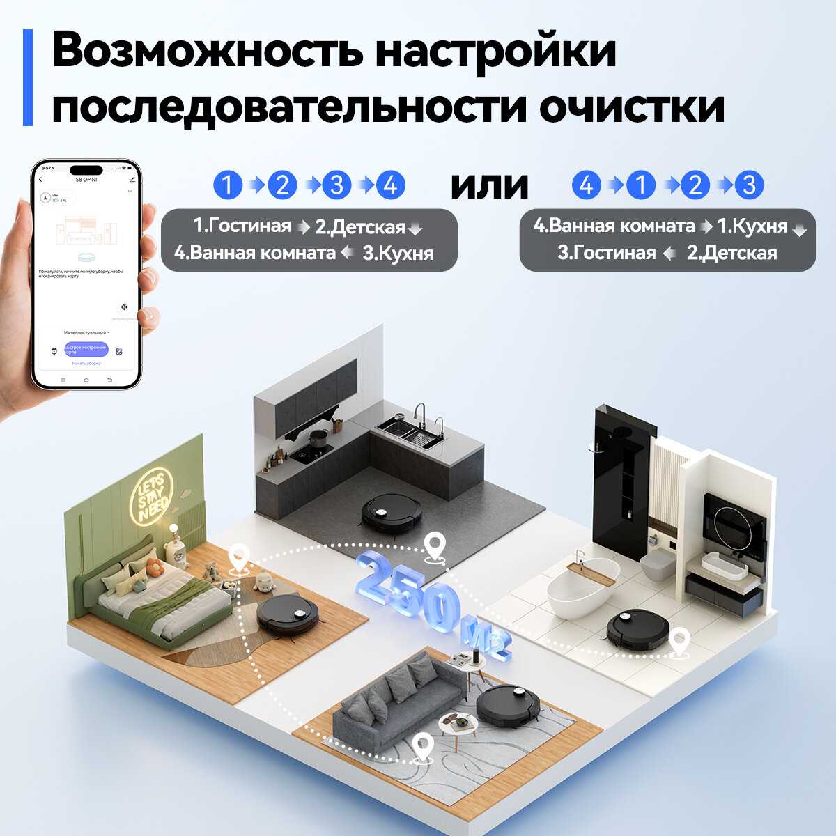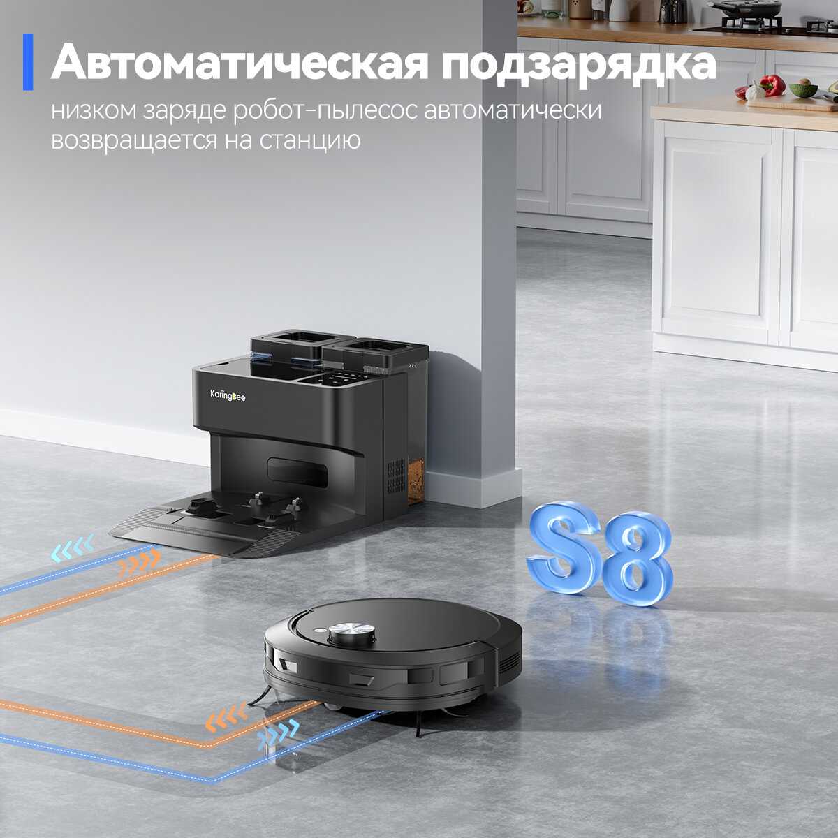 - После завершения уборки робот возвращается на базу для автоматической очистки и подзарядки, обеспечивая полную автономность работы.