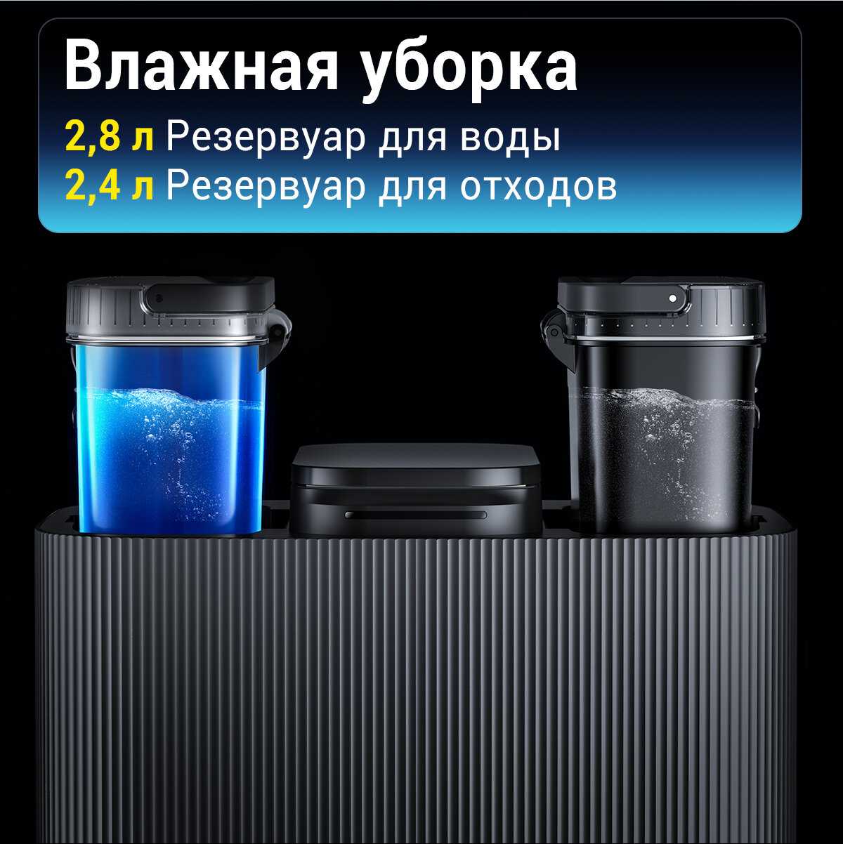 Станция автоматически очищает контейнер для пыли, моет и затем сушит тряпки горячим воздухом в течение 2-3 часов. Эта функция существенно экономит время, избавляя от необходимости мыть тряпки и чистить контейнер вручную после каждой уборки. Пользователям остается лишь своевременно доливать чистую воду и сливать грязную из соответствующих баков станции. -