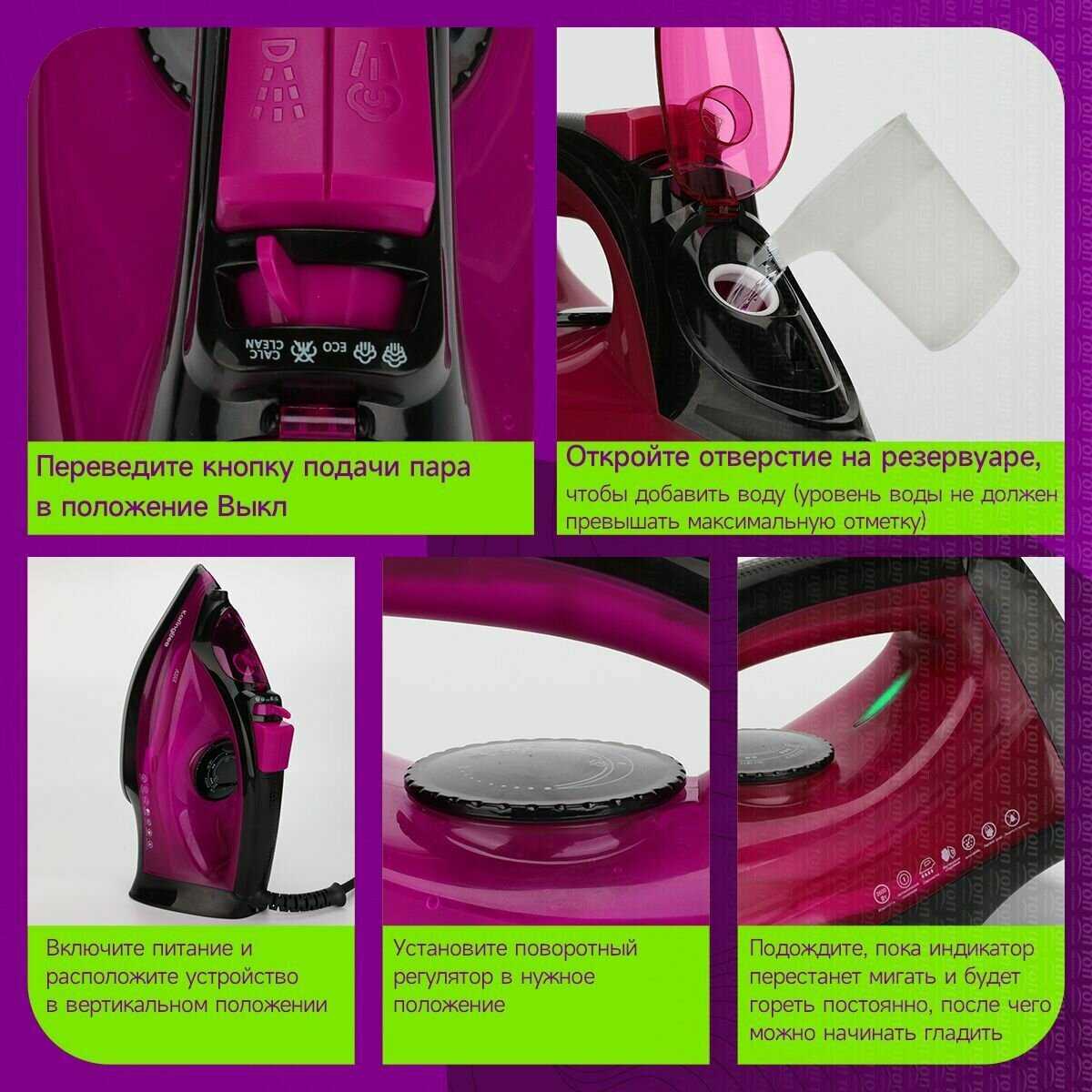 - + очень похож на бошевский утюг.гладит хорошо,в руке удобный.перез первым использованием как я поняла лучше нагреть и выпустить пар несколько раз,вылетела какая то штука из пор на подошве