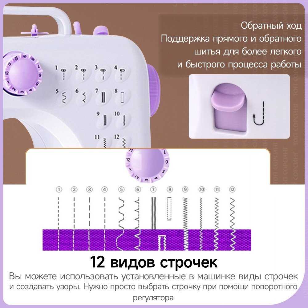 - 12 программ строчек (прямая, зигзаг, эластичная для трикотажа), что превышает возможности некоторых полноразмерных моделей.