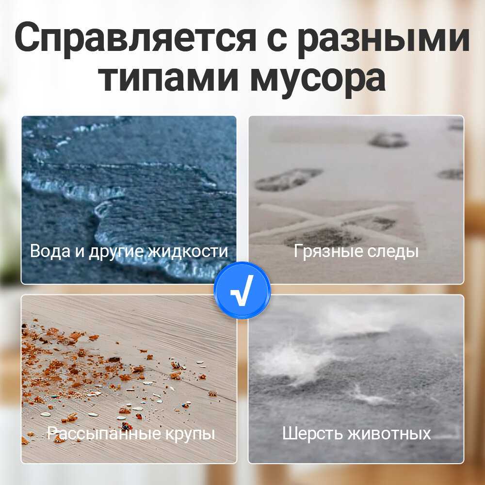 Устройство демонстрирует неоднозначные результаты в зависимости от типа покрытия и загрязнений. На ровном ламинате при регулярной уборке оно справляется удовлетворительно, оставляя пол чистым без разводов при условии своевременной замены воды. Однако застарелые пятна требуют предварительного размачивания и механического воздействия – пылесос не справляется с ними самостоятельно. Крупный мусор и крошки собираются посредственно, часто требуя многократного прохода. Владельцы отмечают проблемы со сбором шерсти и волос: они наматываются на валик или остаются на полу, особенно при уборке ковровых покрытий. На плитке наблюдаются разводы, а углы остаются непромытыми из-за конструктивных ограничений.