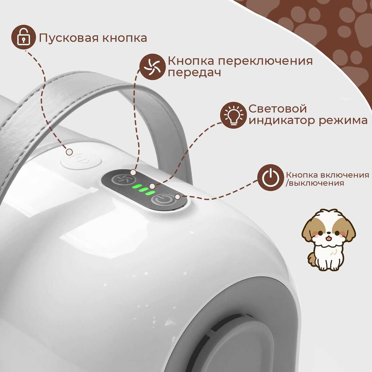- + У этого пылесоса три режима работы по мощности, на минимальной он почти не шумит, а на максимальной справляется с любым загрязнением. Насадки идут все необходимые, включая те, что для стрижки и чистки одежды от шерсти, плюс специальный вариант для сбора подшерстка прямо с животного. В общем, сборка надежная, и он реально помогает поддерживать чистоту, особенно если в доме есть пушистый питомец.