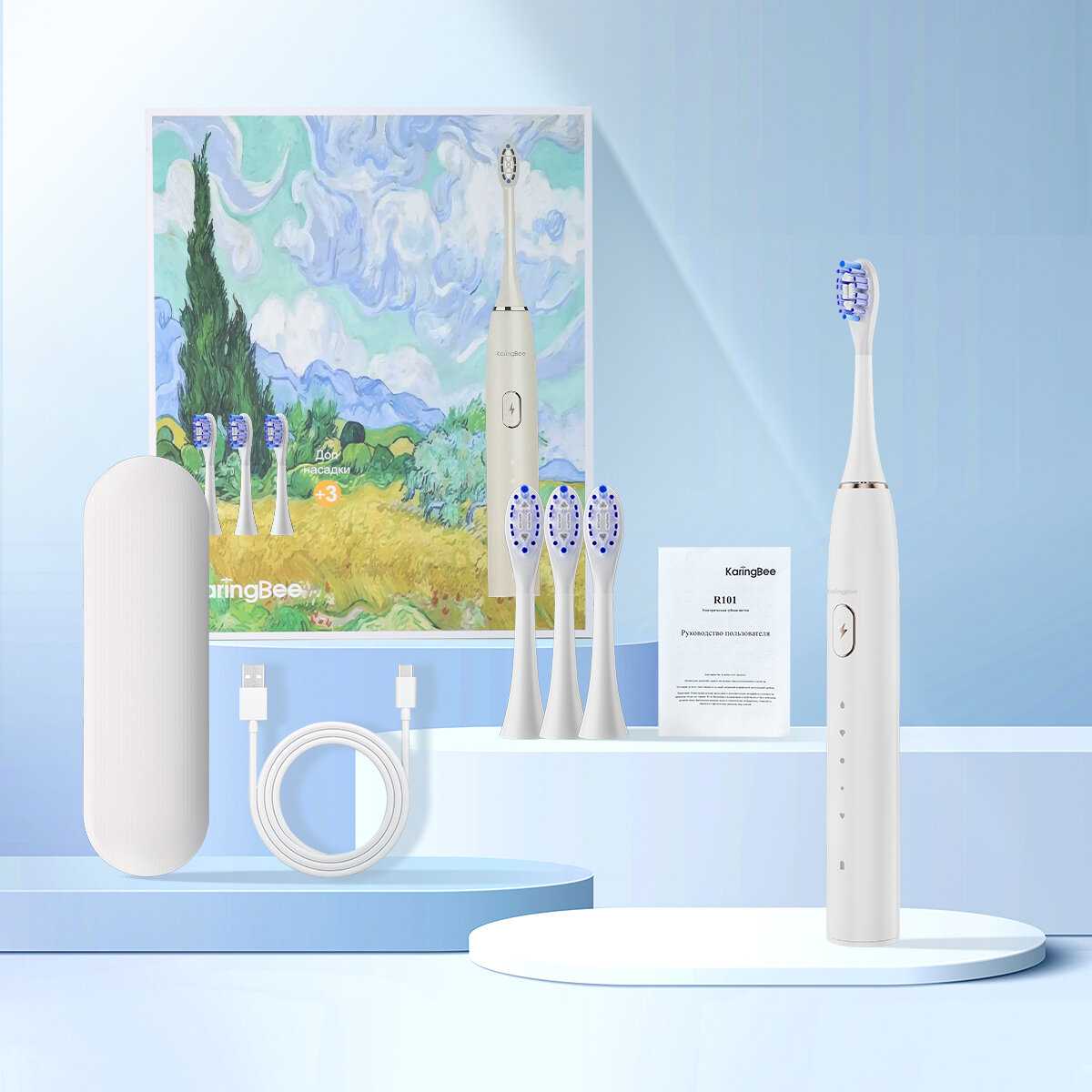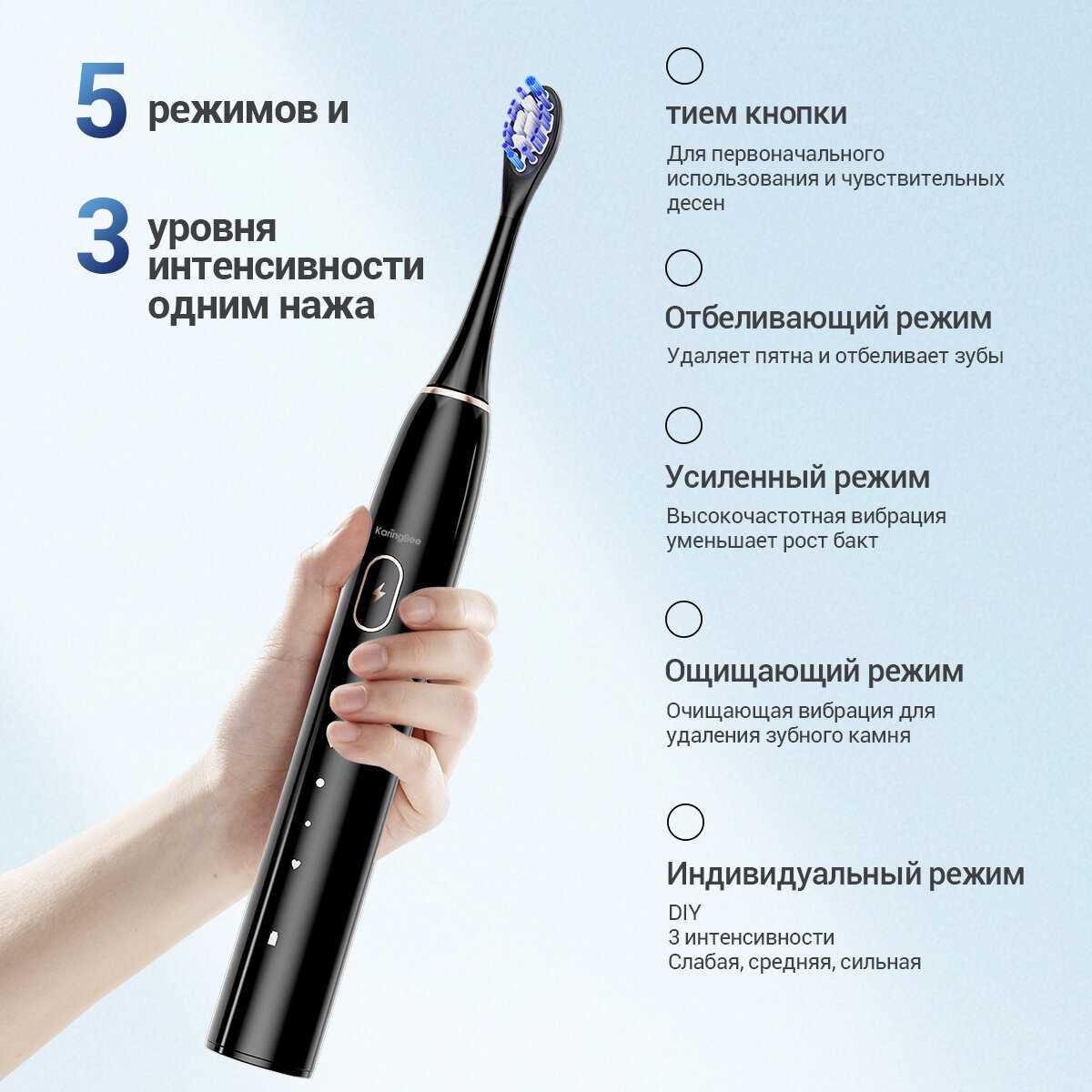 Несколько режимов чистки и 3 щетки в комплекте + чехол для хранения удобный и симпатичный.
