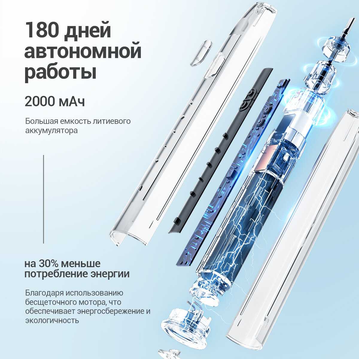 - + Хорошо чистит, одноразовых щеток хватает на долго, долго держит зарядку каждый режим работает