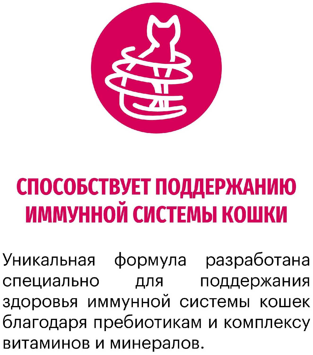 - Оптимальный размер гранул удобен для кошек разных пород и возрастов, включая котят и пожилых животных.