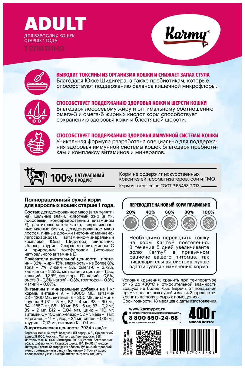 Karmy часто становится универсальным решением для домов с несколькими кошками и даже собаками. Владельцы отмечают, что корм с удовольствием едят животные разных возрастов, пород и с разными вкусовыми предпочтениями. Это позволяет стандартизировать кормление и избежать ситуаций, когда каждый питомец требует отдельный рацион. Отсутствие негативных реакций при кормлении нескольких животных одновременно также говорит о его стабильном качестве. -