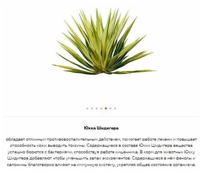 - Включение юкки шидигера в состав эффективно уменьшает интенсивность запаха фекалий, что подтверждается множеством пользователей.