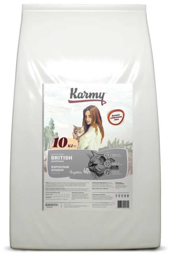 - + 1. Сухой корм KARMY British Shorthair разработан специально для британских кошек, учитывая их потребности.