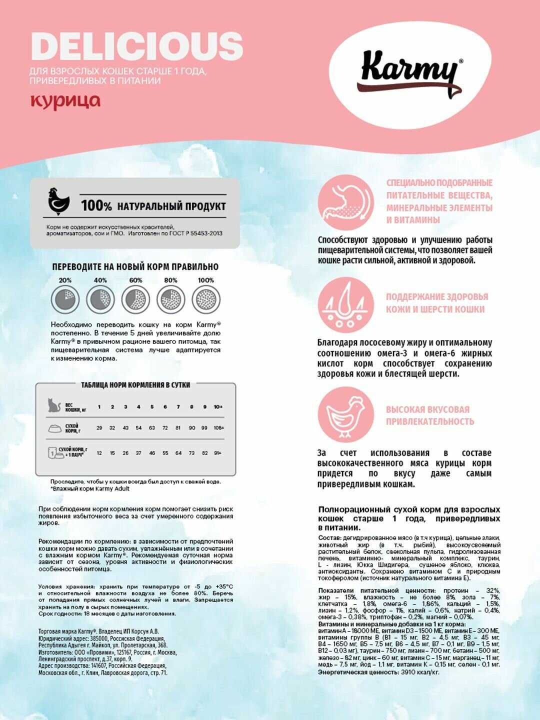 Отзывы о Корм для кошек Karmy Delicious (курица)