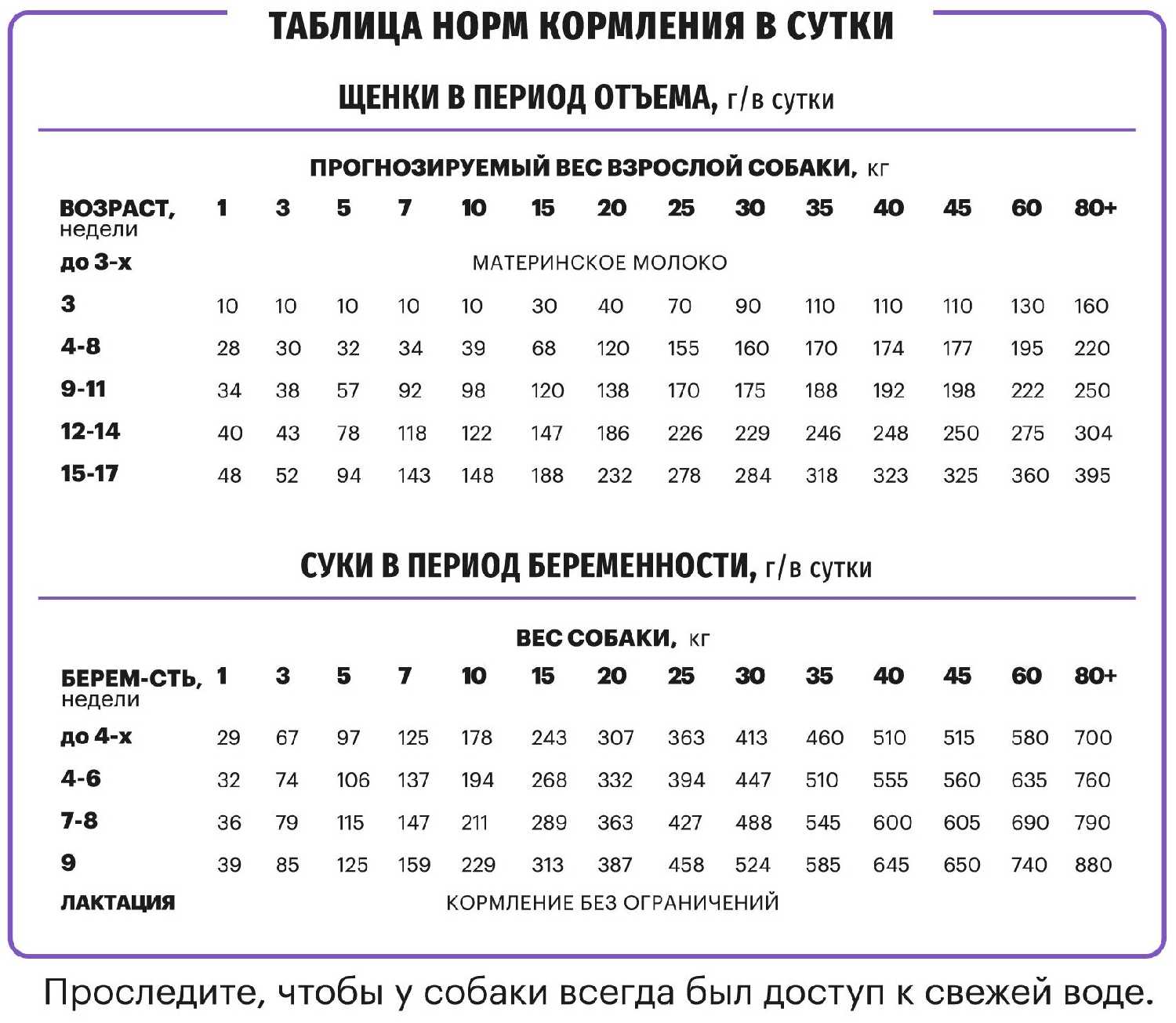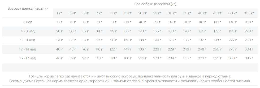- Стабильный набор веса у щенков при соблюдении суточной нормы.
