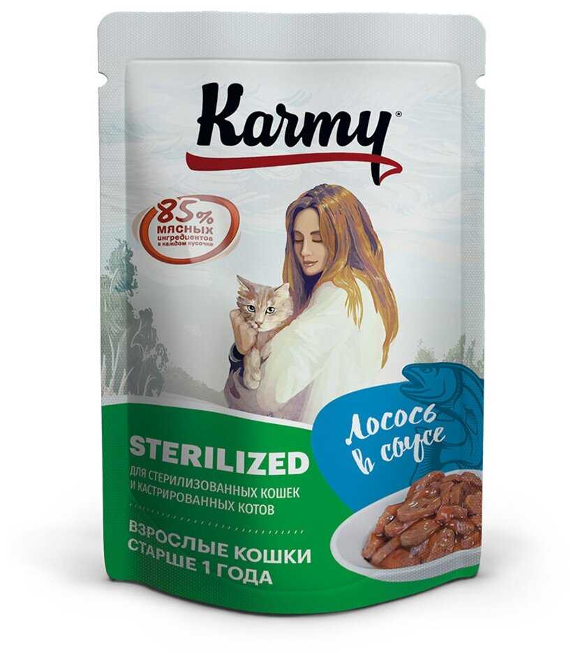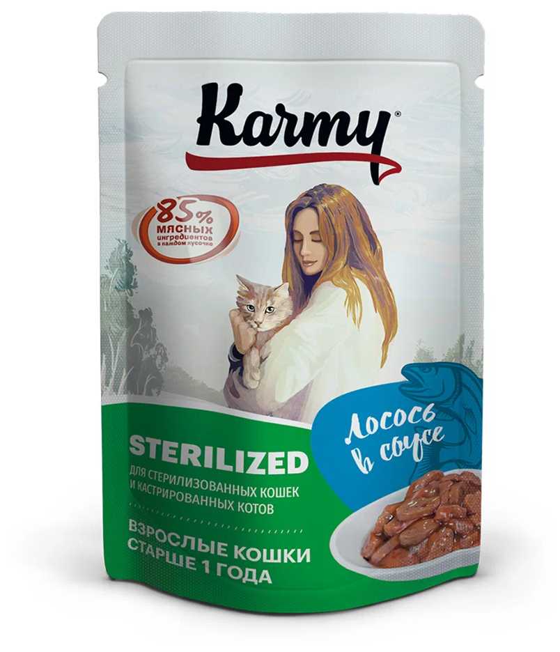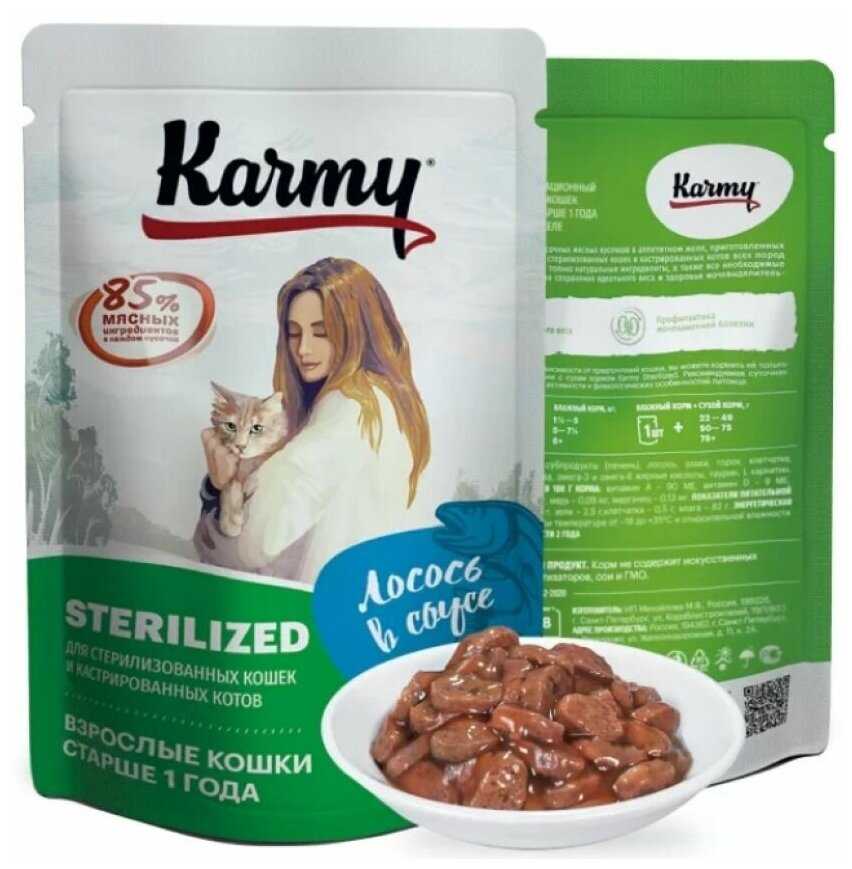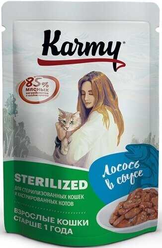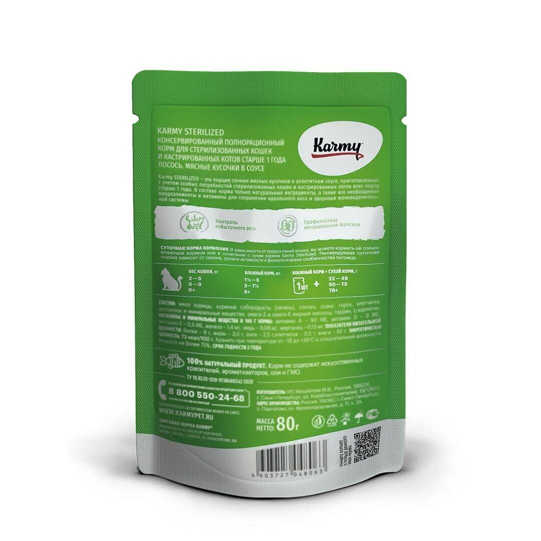 Обзор Karmy Sterilized, лосось (кусочки в соусе)*: