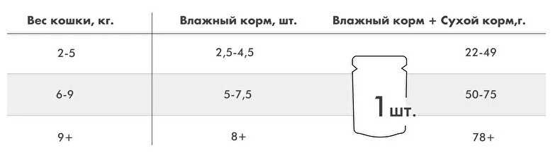 - При кормлении влажным кормом в рекомендованных количествах у некоторых кошек наблюдается набор веса, что вынуждает владельцев уменьшать порцию и, следовательно, увеличивает стоимость грамма продукта.