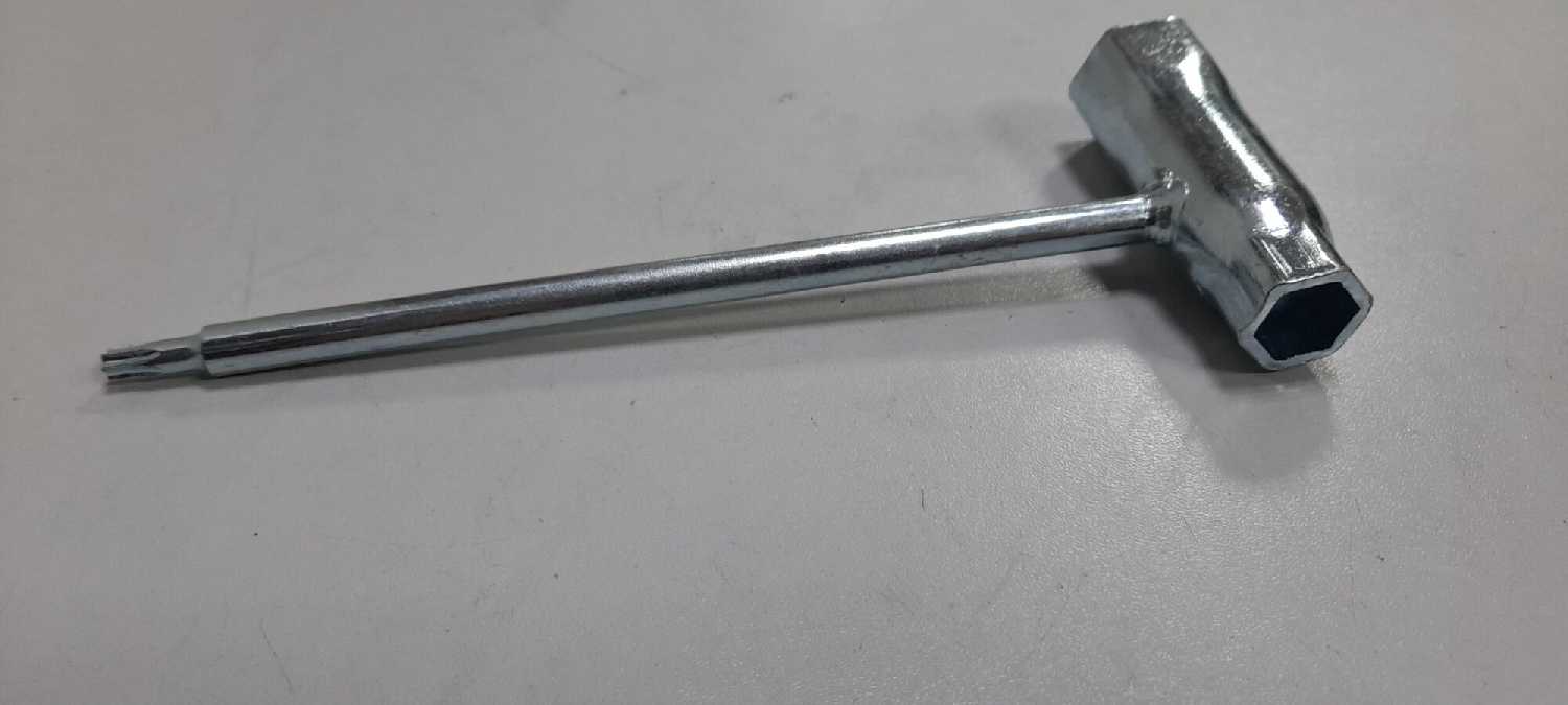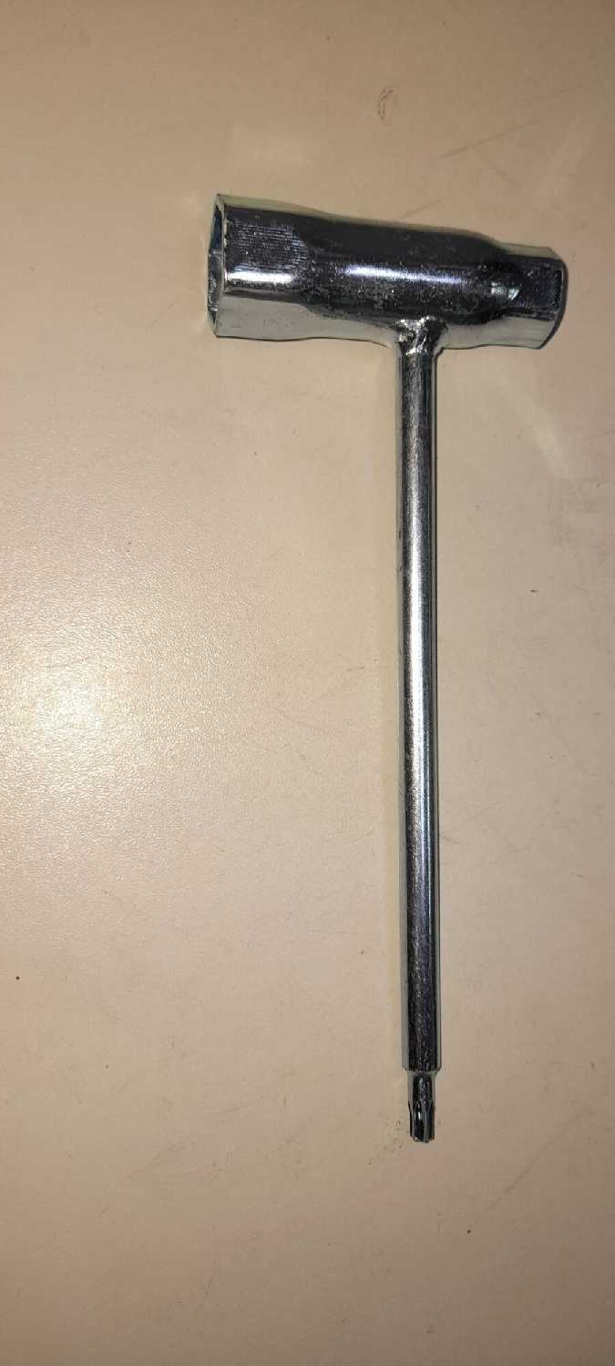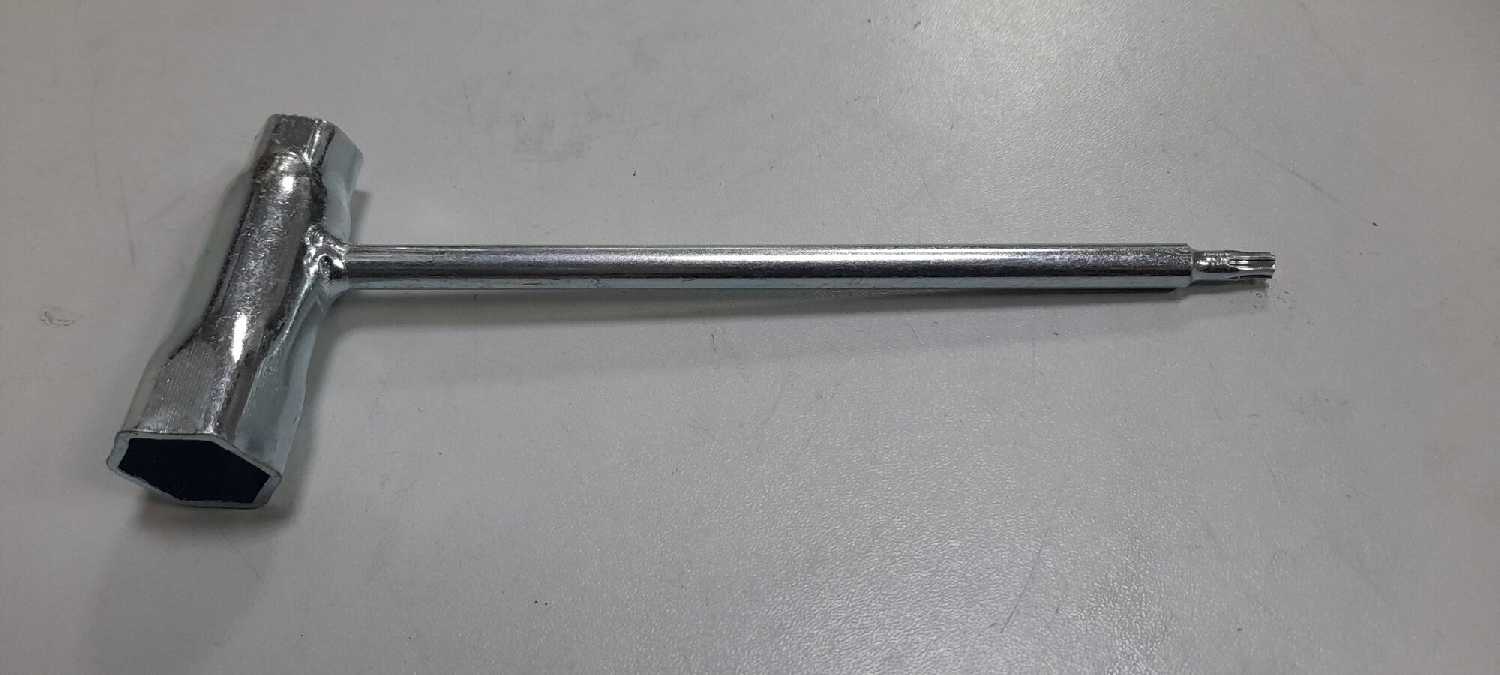 Дополнительная информация : | Ключ комбинированный звезда (Т-образный, наконечник 6 граней звезда d=4.5) подходит для откручивания свечей на бензопилах, триммерах, также используется для крепления крышки шины на пилах |