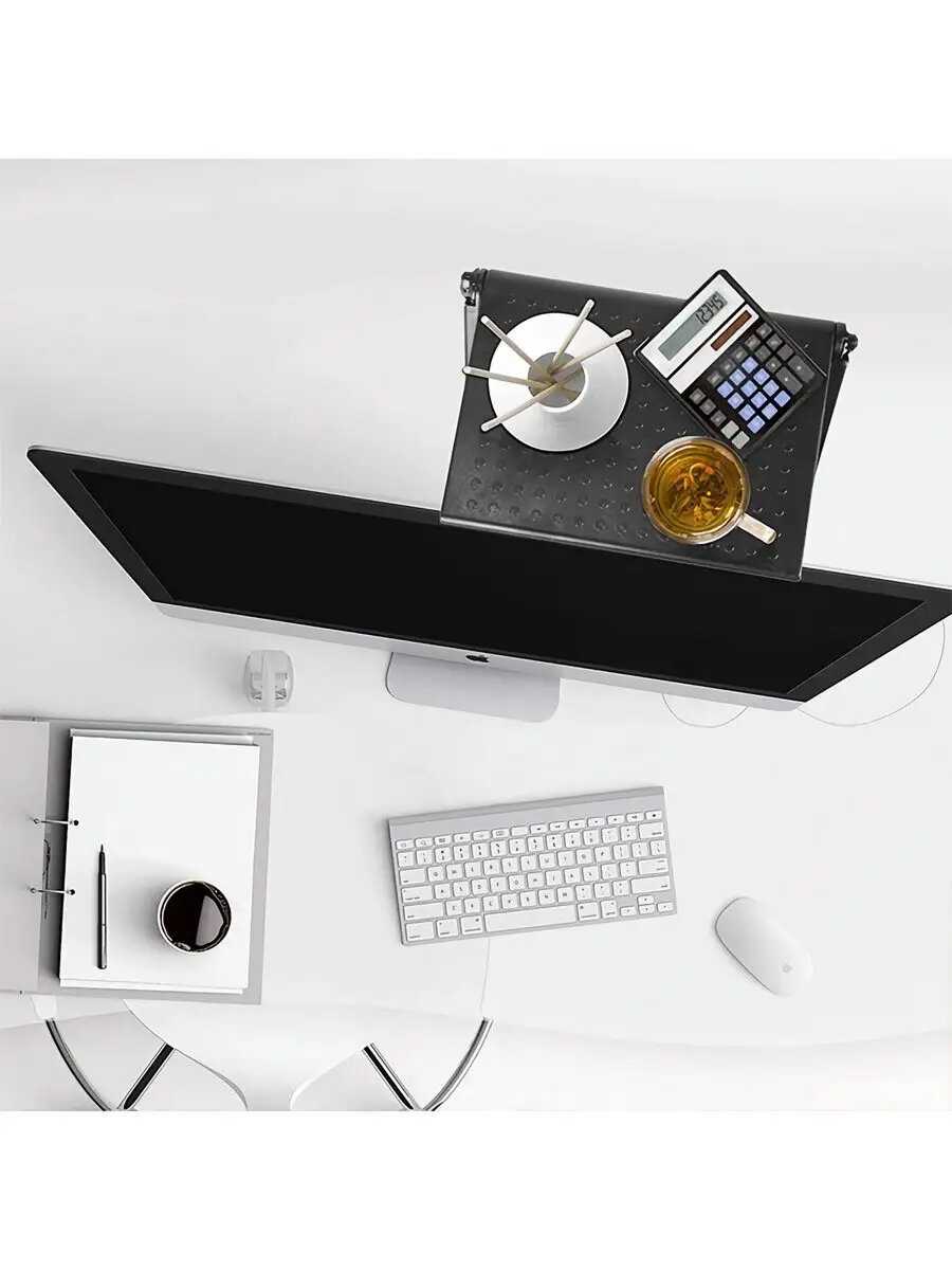Установил полку на монитор меньше чем за минуту. Чуть-чуть прикрывает камеру, но на изображение в zoom это никак не влияет. В случае чего всегда можно передвинуть правее или левее.
