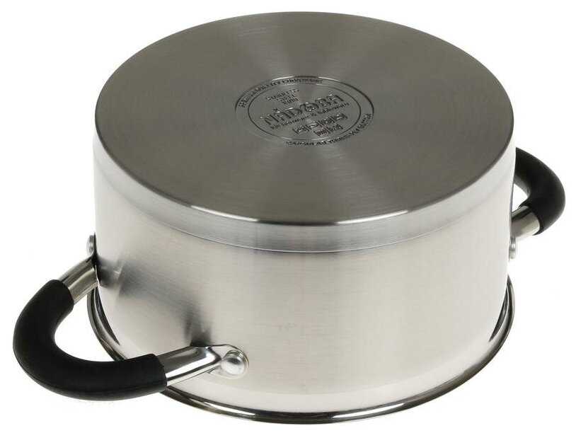 - Хорошее качество стали. Не темнеет, не царапется. Дно толстое. Объем оптимальный, и для гарнира и для супа подходит. После посудомоечной машины своий изначальный вид не потеряла