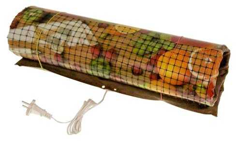 После включения нагрелся как обычная грелка за 1-2 минуты. Расчехлил одну посмотреть, что внутри. Там обычный ТЭН, ламинированный в полиэтиленовую плёнку, с одной стороны - фольга. и две медные полосы по сторонам. Подумал, обычный развод, тем более нашёл подобный отзыв. Но оказывается, есть такой тип ИК обогревателей - плёночные, можно информацию по нему найти. Продаются аналогичные сушилки без чехлов, прямо на плёнку ложатся продукты. Глядя на них, буду использовать также под сушку грибов, только надо наклеить изоленту на места с медными проводниками, иначе небезопасно. В таком виде она мне даже больше нравится.