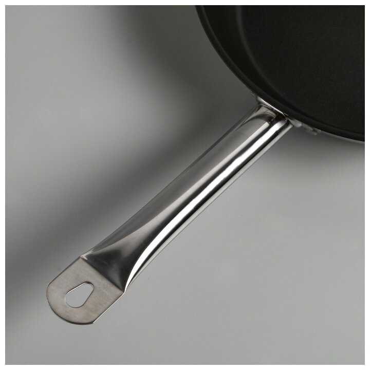 - + Отличная сковорода, с высоким бортом, покрытие хорошее. Главное что она стальная.