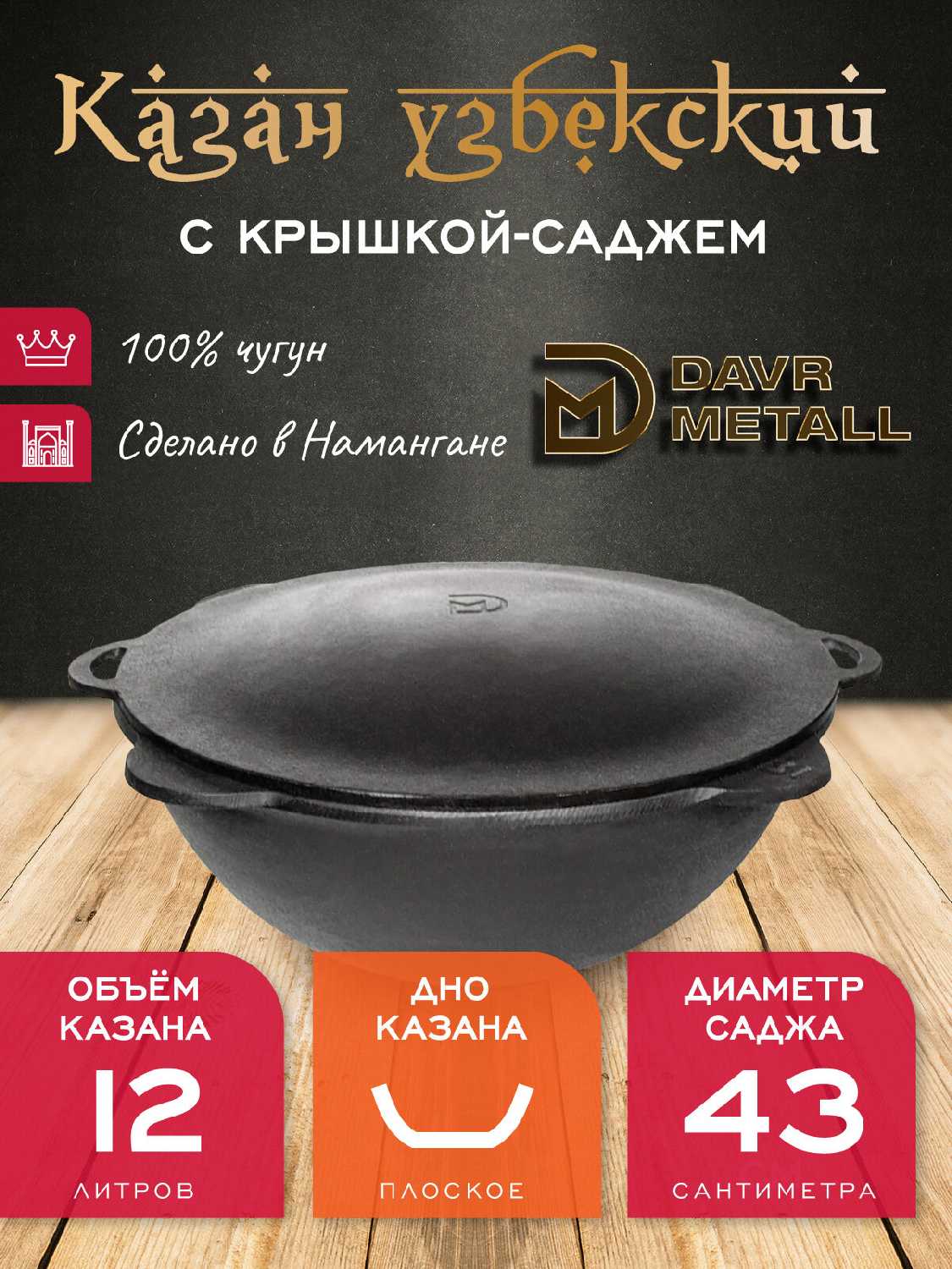 7/10 балловDavr Metall Казан с крышкой саджем 12 л (плоское дно)