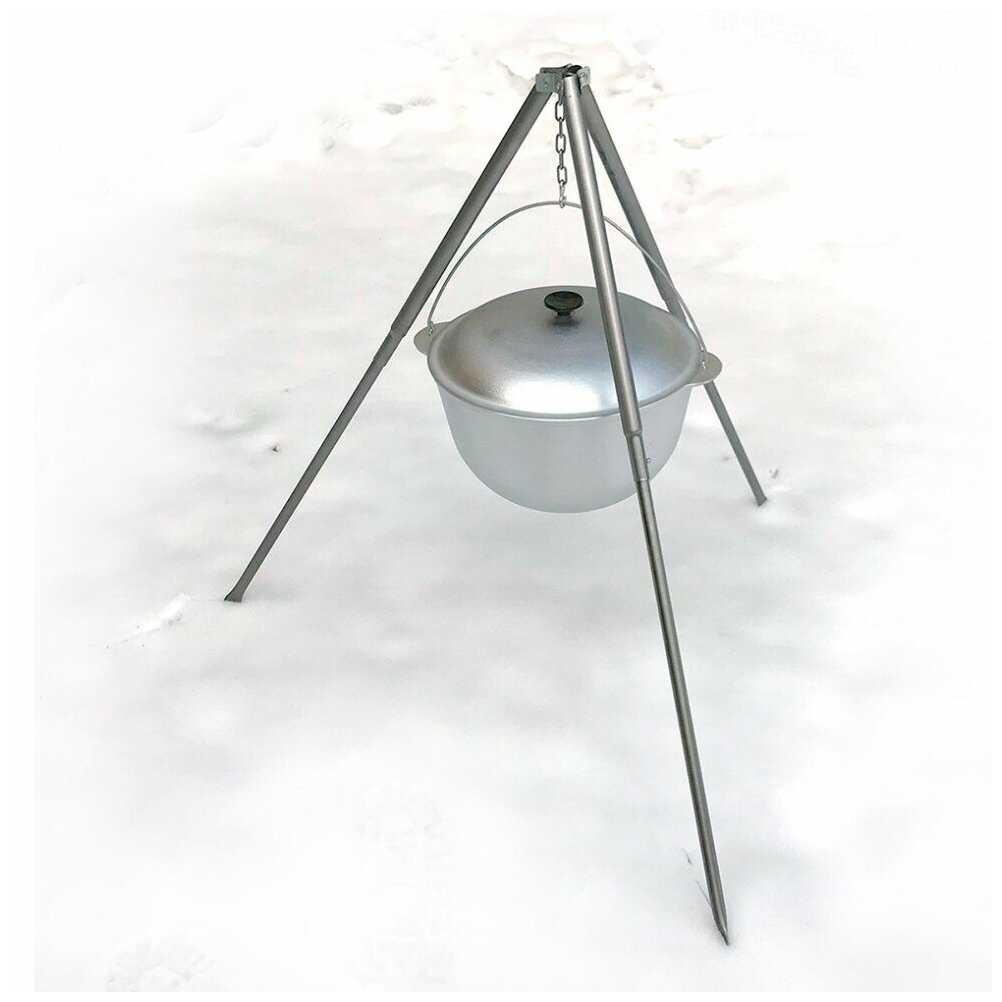 - + Отличная складная тренога для костра. Имеет небольшой размер сложенном состоянии, за счёт чего легко умещается в брезентовый чехол из комплекта и не занимает много места. Качество изготовления отличное для такой вещи.