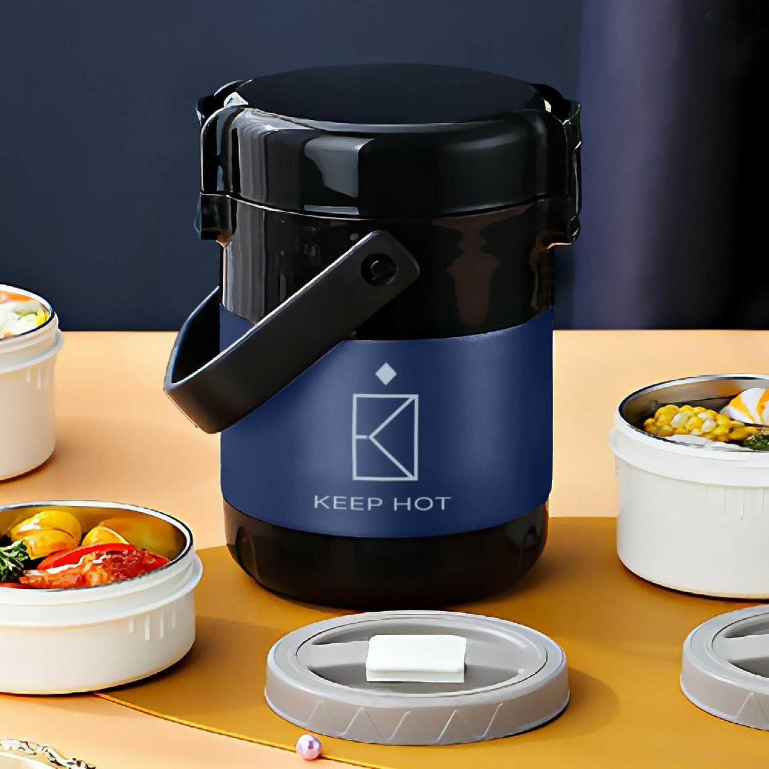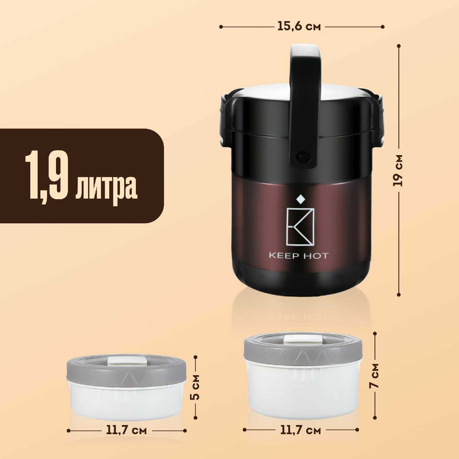 - + Удобная конструкция из двух ёмкостей. Отличный размер - занимает не много места в рюкзаке, но достаточно вместительный. Термо-сумка в комплекте позволяет положить пачку салфеток, вилки, ложки и т.п. Приятные материалы у всех деталей. Тепло держит.