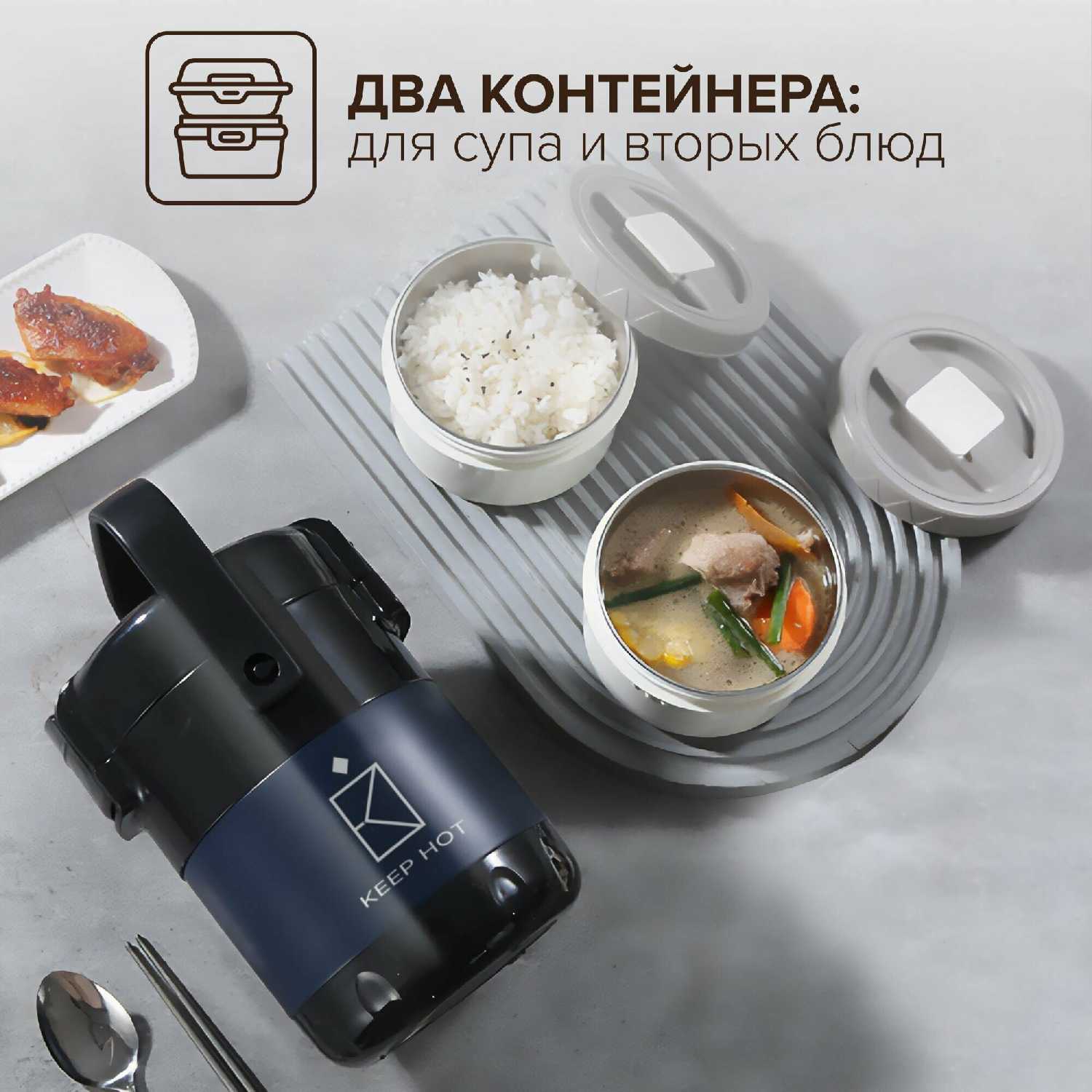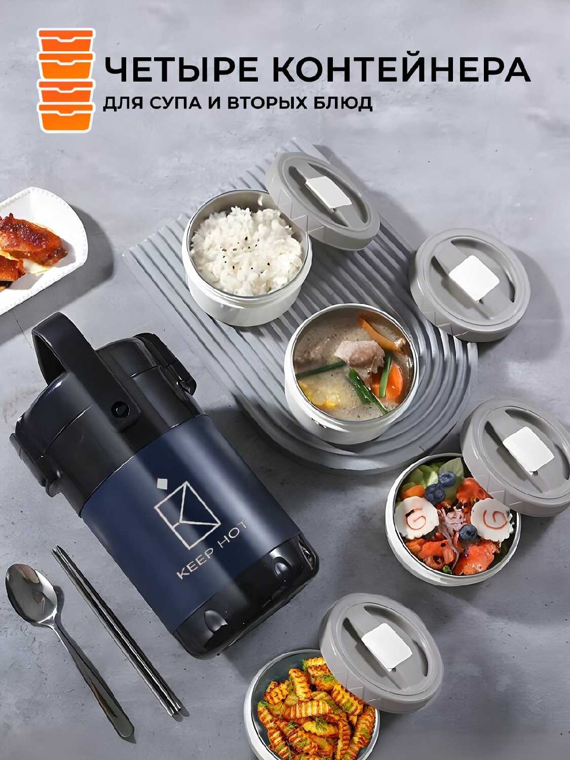 Но ни какие 12 часов он не держит! И если положить в контейнер в большую чеплашку - горячий обед. А в маленькую положить овощи. То придется кушать пищу в прикуску с теплыми огурцами😁или помидорами. Так что смотрите сами. Отзыв честный . Ставлю 5 звезд. За то ,что хотябы мой любимый муж не ест- холодную еду! Это самое главное☺️. Контейнера хорошие. Обьемы нормальные. На один раз плотно покушать!