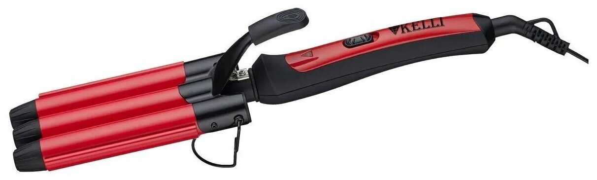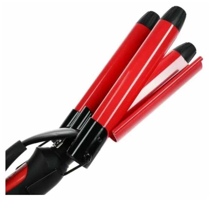 Отзывы о Плойка для завивки KELLI, 65 Вт, тройная, керамическое покрытие, красно-чёрная