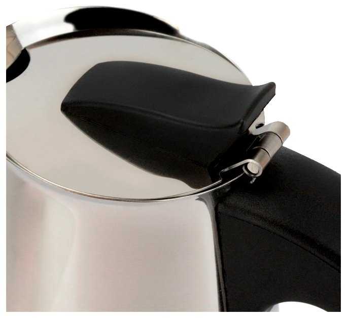 - Ручка с термоизоляцией и продуманная форма колбы предотвращают ожоги при контакте, в отличие от аналогов с открытыми металлическими элементами.