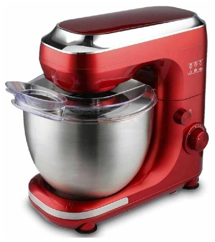 Это первый стационарный миксер, покупали взамен ручному. Выбирал с хорошей мощностью и подходящего дизайна. Подкупил насыщенный красный цвет. Оказался немного больше чем я предполагал. В раскрытом состоянии надо 50 см. пространства. Идеально совпал с цветом кухни. Полностью соответствует описанию. В работе проверяли пока немного, но справился с замесом достаточно крутого теста. Идеально взбивает белки на безе. Покупкой очень доволен.