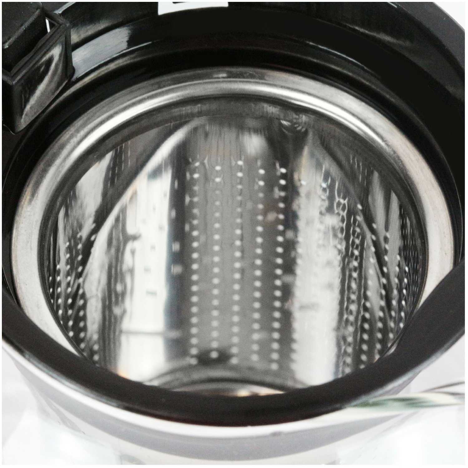 Очень удобно, что чаинки не попадают в чашку, а остаются в чайнике. Причём металлический стаканчик с отверстиями легко достаётся и моется отдельно от чайничка. А через стеклянный корпус хорошо видно, насколько крепко заварен чай