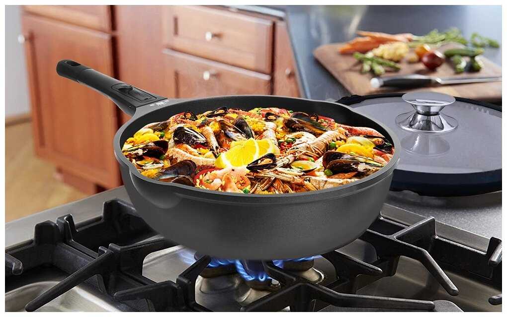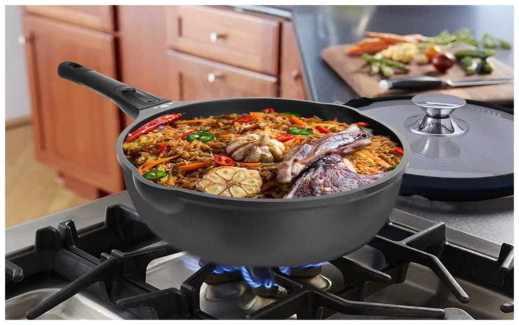 - + Купил для жены – она такую давно хотела. Сковорода чудесная – все получается, сама сделана качественно, особенно ручка. Теперь это ее любимая – все делает на ней и котлетки, и картоху любимую фри, мясо вообще изумительно выходит. Как инженер могу сказать одно – очень сделано добротно и материал хороший. Твердая пятерка производителю.