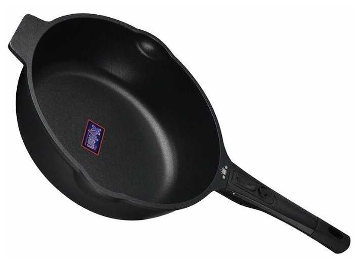 - + Отличная сковорода. Пользуюсь две недели довольна очень. все получается как надо - не пригорает. Моется легко. крышка прилегает плотно. Сначала боялась снимать ручку, а теперь вижу что она снимается и одевается легко.