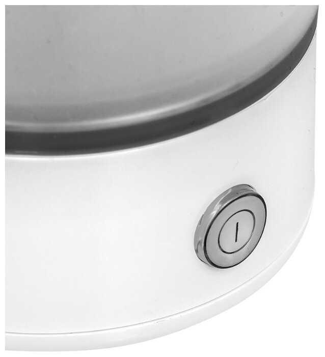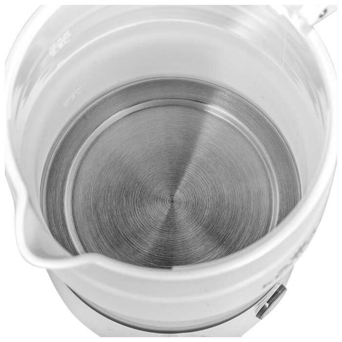 - + Компактный. Объем 0,6 литра вполне хватает на двоих человек. Запаха силикона нет, я прокипятил пару раз с добавлением лимона. Есть автоотключение при закипании воды, хотя в техн. характеристиках это не прописано.