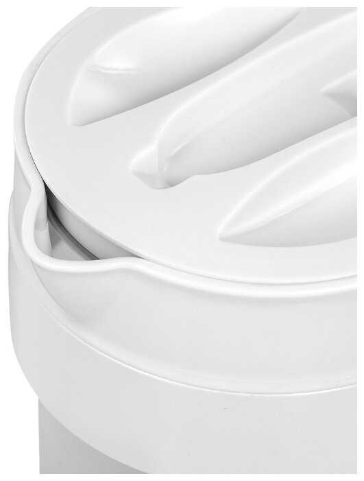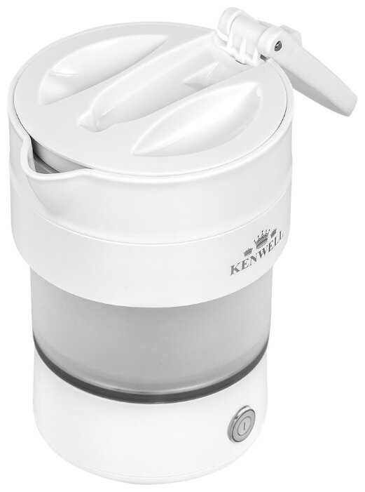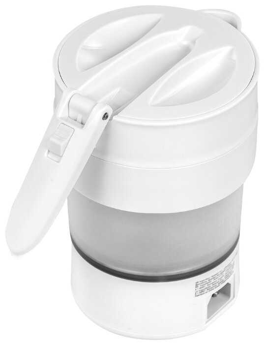 - + Чайник изумительный. Брала в поездку, в больницу. Все функции обычного электрического чайника. Раскладывается легко, в сложенном виде занимает ОЧЕНЬ мало места. Что очень важно – и крышка и шнур снимаются, у других такого нет. Сам отключается, имеет индикатор световой. Объем на 2 большие кружки. Так что пользуемся и дома. Запаха нет никакого. Всем кто видел очень понравилось!