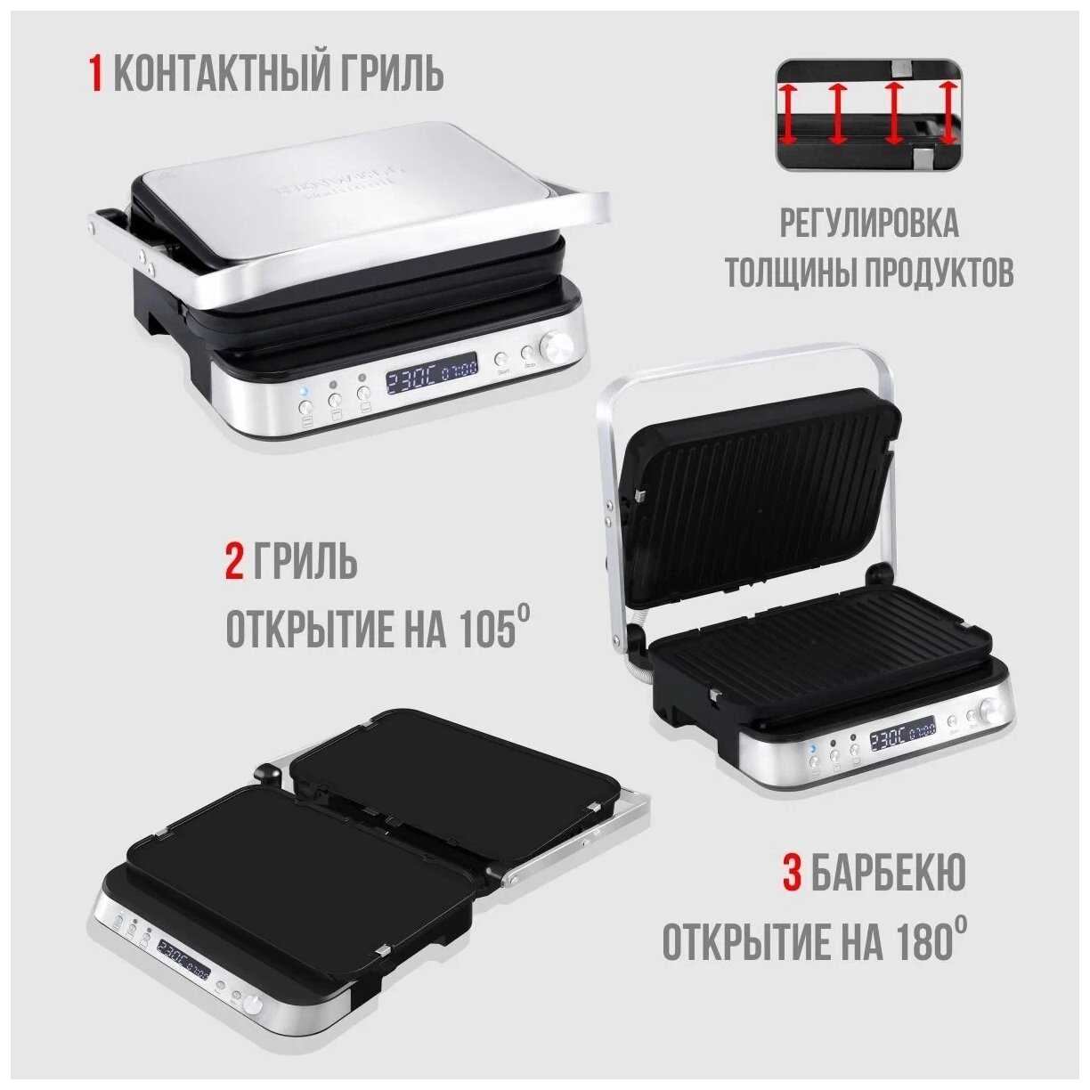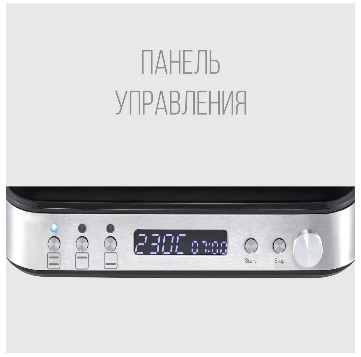 - Отдельный контроль нагрева верхней и нижней панели (до 230°C) для точной прожарки.