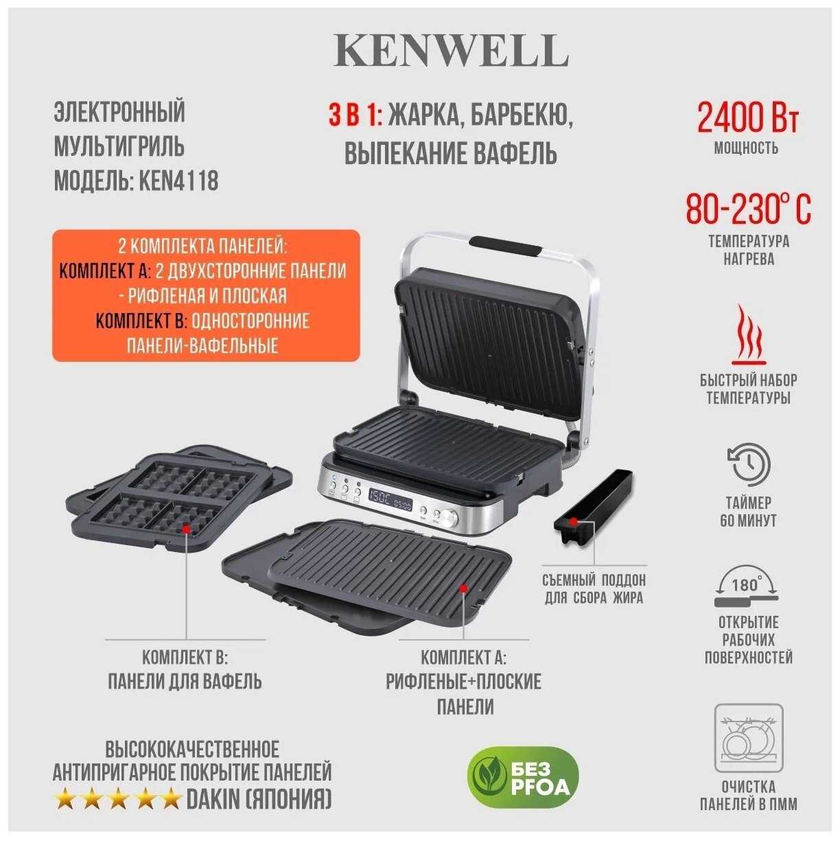 Как и любой мощный гриль, Kenwell может разбрызгивать жир, особенно при жарке жирного мяса на высокой температуре. Пользователи советуют не перегружать панели и контролировать уровень нагрева. Это не недостаток конкретной модели, а особенность технологии. -