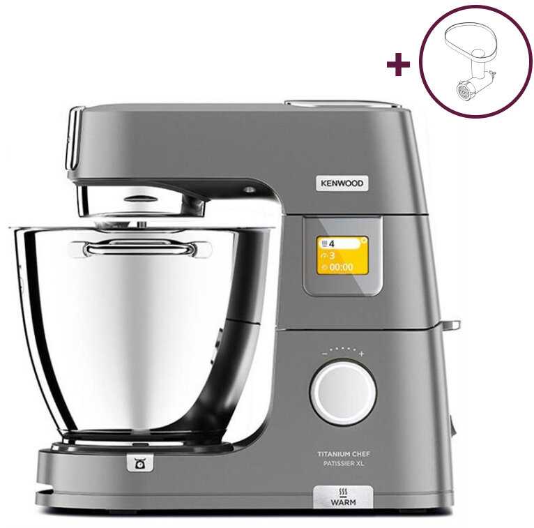 - + Кухонная машина Kenwood KWL90.164SI Titanium Chef Patissier XL впечатляет мощным мотором, качественными насадками и стильным дизайном. Удобна в использовании, идеально подходит для выпечки и готовки!