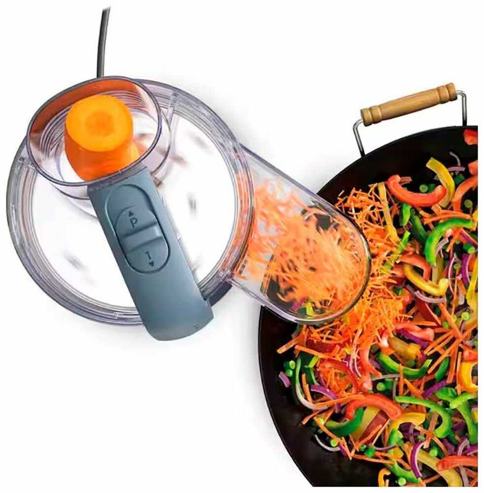 Устройство отлично справляется с шинковкой и натиранием твердых овощей, таких как морковь, картофель, кабачки и свекла. Оно эффективно измельчает зелень, лук и быстро готовит овощные смеси для начинок или салатов. Также пользователи успешно используют его для приготовления фарша из курицы и измельчения орехов. -