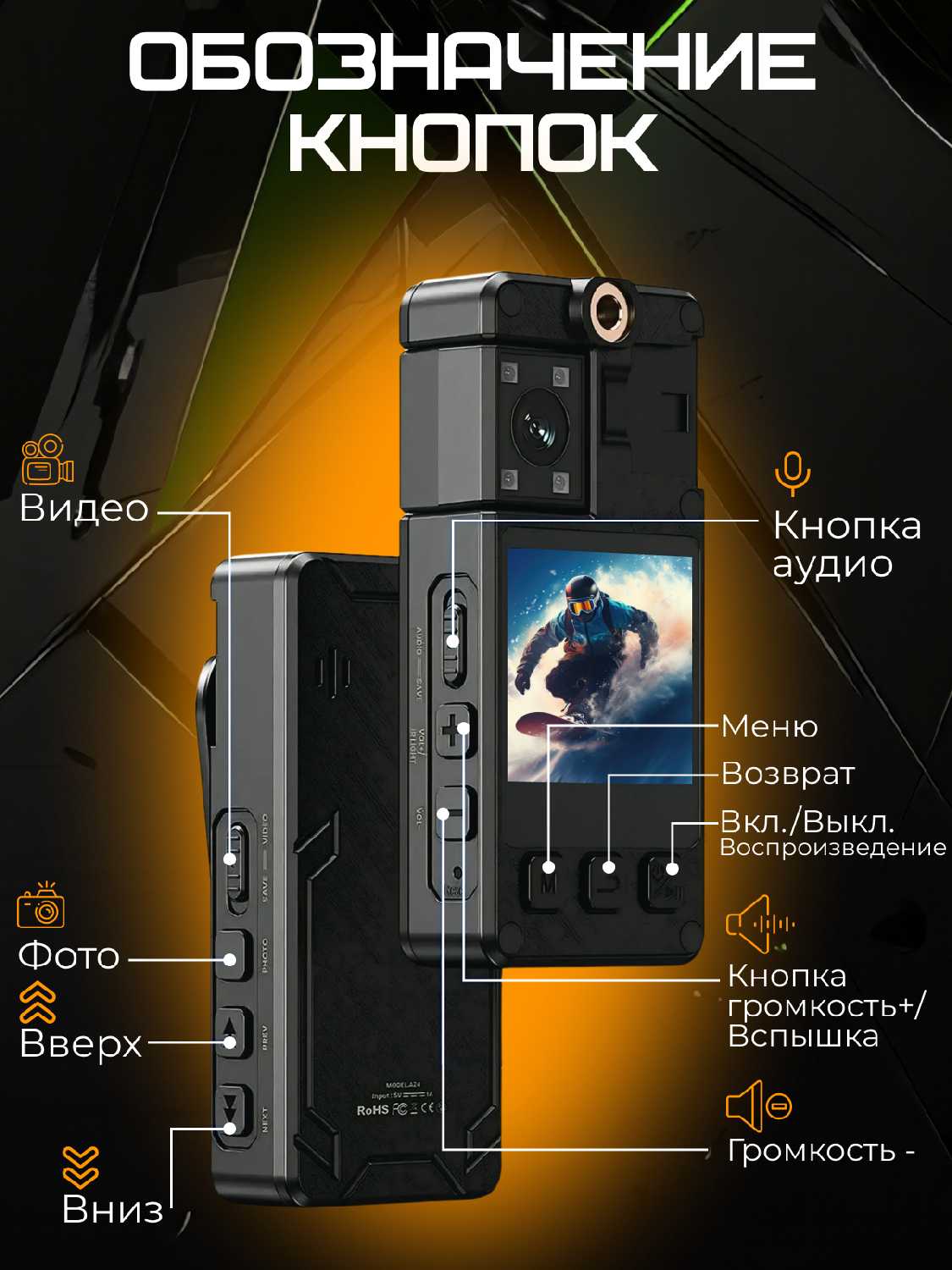 - - все кнопки слабые,крепеж-прищепка не надёжный, при повороте сразу отваливается. Качество видео удовлетворительное файлами по 30 сек. НЕТ инструкции на русском