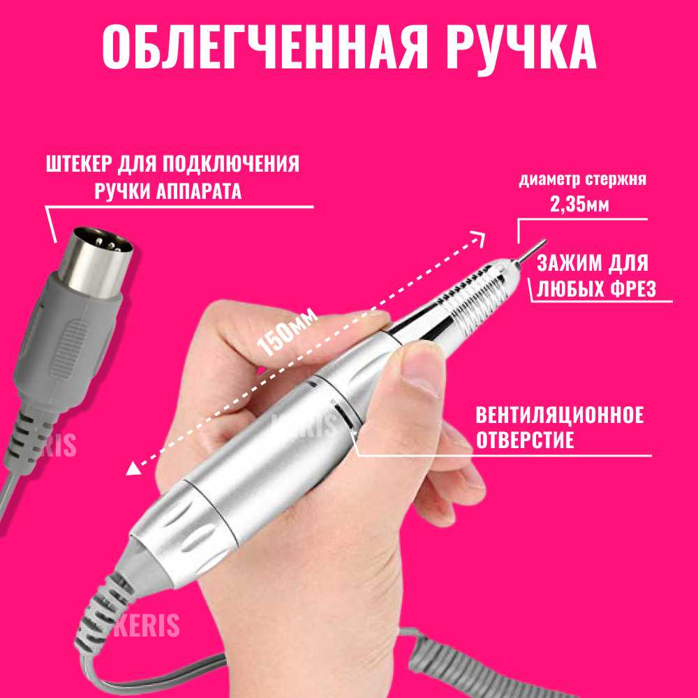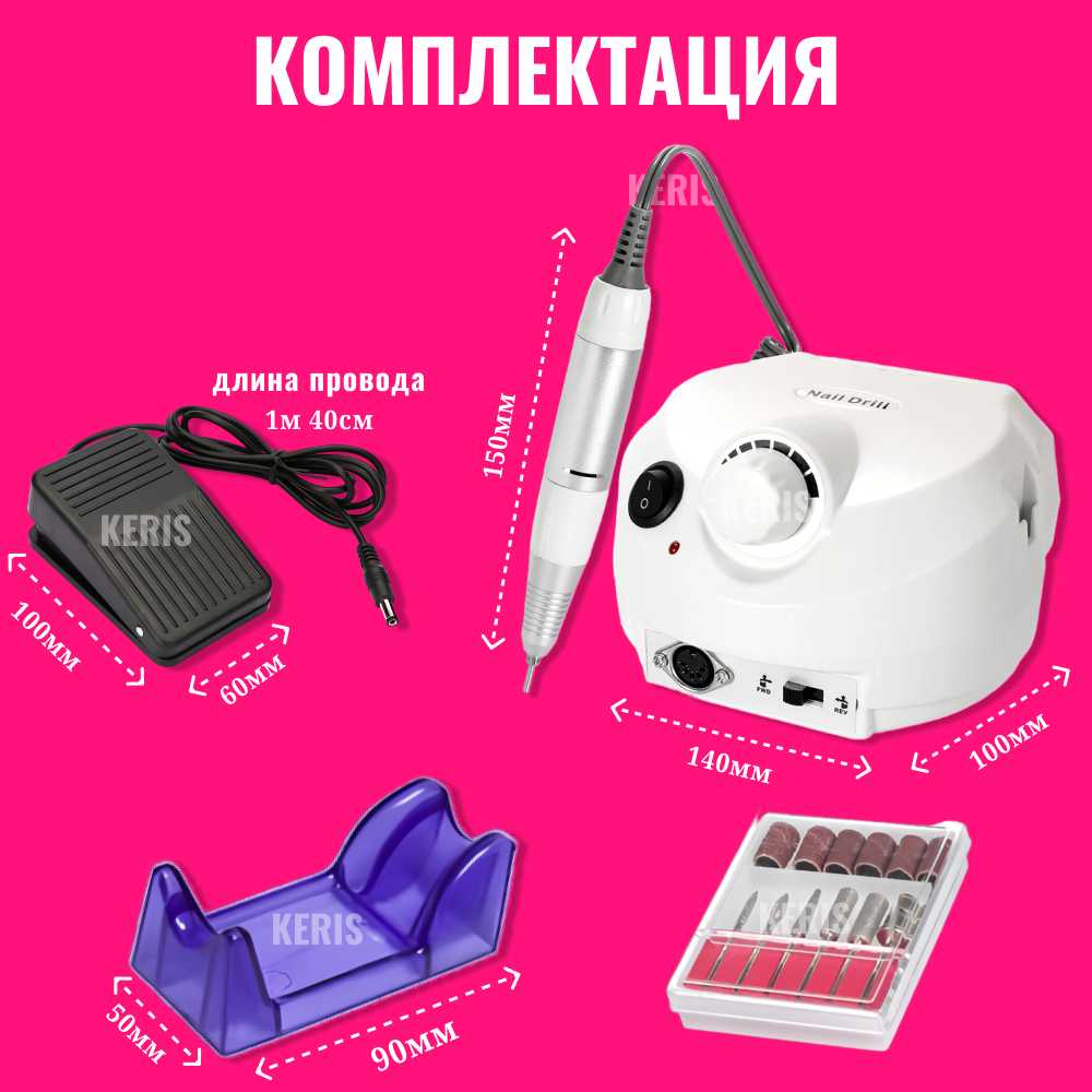 Особенности : | набор фрез в комплекте, педаль, плавная регулировка, подставка для наконечника |