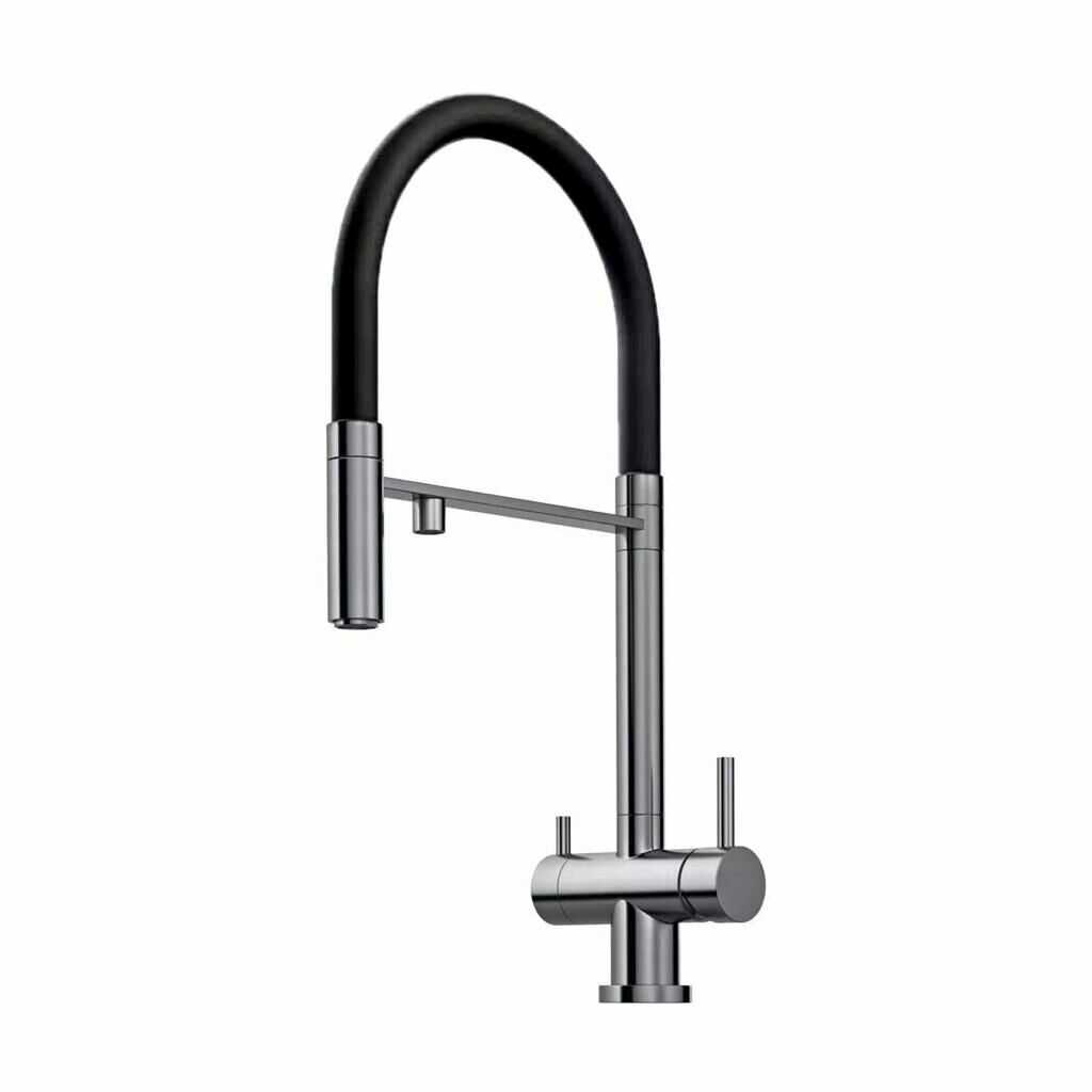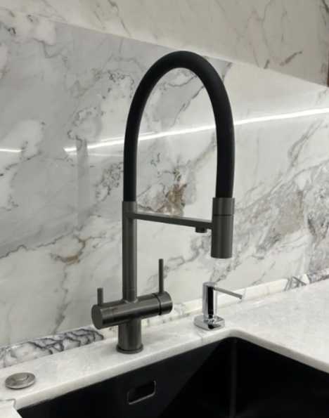 - + Прекрасный дизайн и удобство эксплуатации за счёт возможности использования гибкой части для мытья раковины в углах