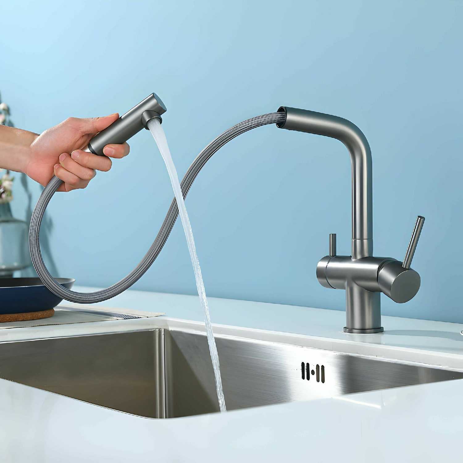 - + Шикарный. Удобен в эксплуатации, красив на вид. Встроенное переключение фильтра, выдвигающийся шланг для ополаскивания раковины, мягкий ход переключателей - этот смеситель ван лав. Для тех, кому жалко 40+ на grohe)