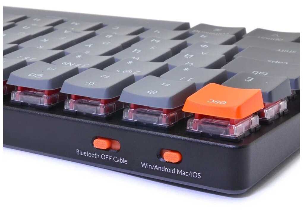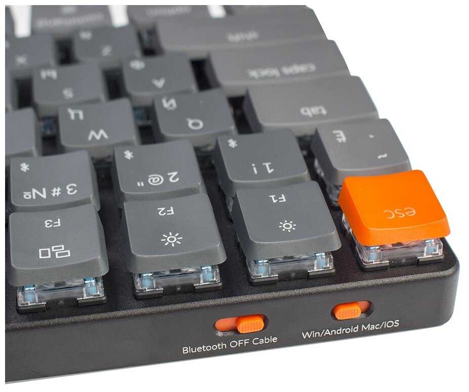 - Поддержка как macOS (с отдельными кейкапами в комплекте), так и Windows, включая переключатель на задней панели.