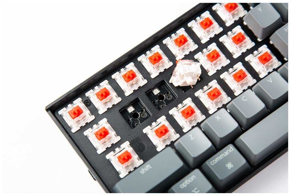 Так же попался бракованый свитч, а так как компания кейхрон в отличии от своих конкурентов не кладет в комплект дополнительные свитчи возможности устранить эту проблему у рядового пользователя не будет. Суть брака в том что внутри свитча была установлена кривая пружина, которая при нажатии издавала щелчок. Официальный дистрибьютор в России после обращения ответили, "вам поможет смазать клавиатуру или заменить свитч", Так что буду менять клавиатуру, благо ДНС обычно адекватно производит замены, пока не прошел период 14 дней.
