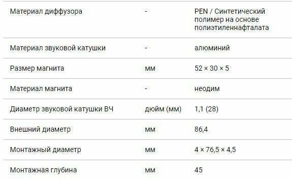 | Материал ВЧ-диффузора : | PEN/Синтетический полимер на основе полиэтиленнафталата |