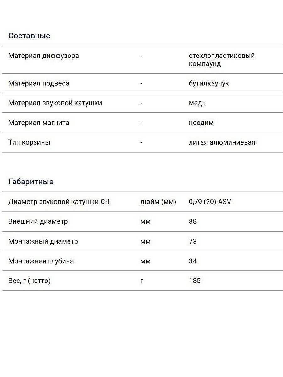 | Материал СЧ-диффузора : | Стеклопластиковый компаунд |