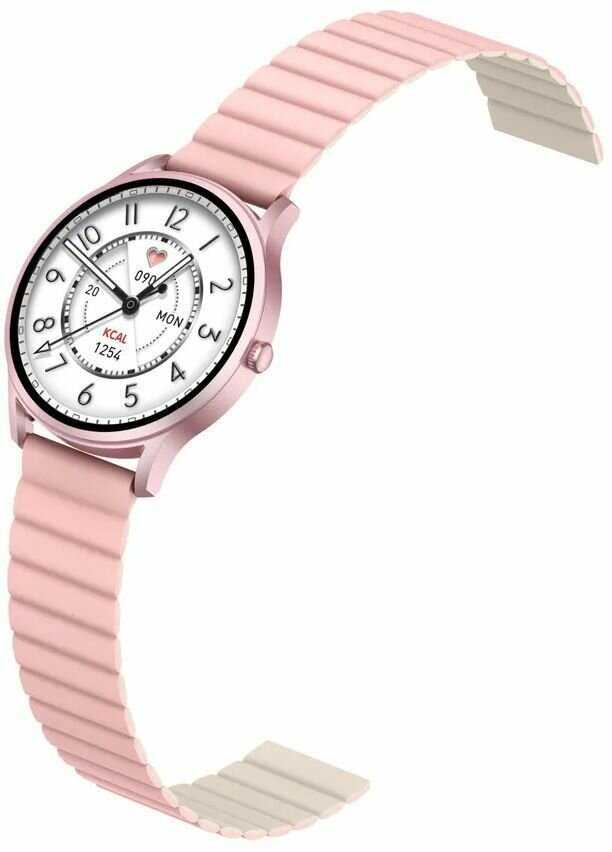 Внешний вид часов — одно из их главных достоинств. Пользователи, особенно женщины, часто описывают их как стильные, эстетичные, "девчачьи", визуально дороже своей стоимости. Они хорошо смотрятся даже на тонкой руке. В комплекте обычно идут два ремешка: силиконовый магнитный (обеспечивающий удобную регулировку и "невесомое" ощущение) и дополнительный (часто описываемый как "кожаный" или "под кожу", хотя реальный материал вызывает вопросы). Магнитный ремешок удобен, но имеет минусы: склонность сползать у некоторых пользователей и быстро пачкаться. Альтернативный ремешок нравится не всем. Возможность замены ремешков на стандартные 22mm — большой плюс. Сами часы легкие. Качество материалов корпуса (особенно "золотого" или "серебряного" пластика на ремешках) и стекла вызывает у части пользователей сомнения в долговечности, хотя отмечается устойчивость экрана к царапинам.